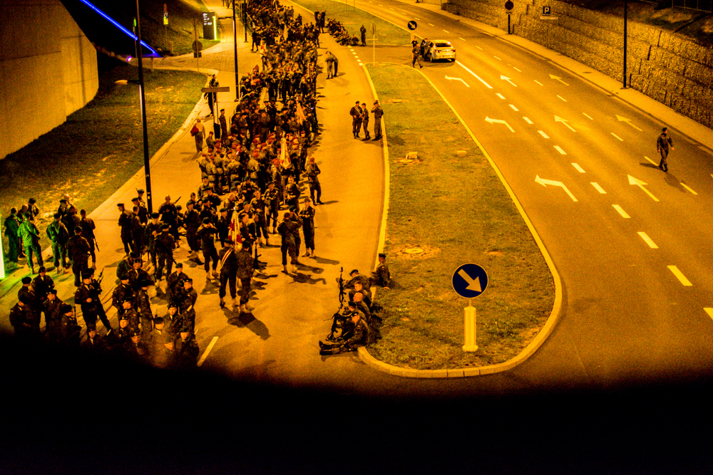 Udało nam się podejść na miejsce około północy, ponieważ pierwszy przejazd grupy miał się rozpocząć około 00:30, jak poinformowali nas obecni na miejscu żołnierze. Na miejscu czekało już sporo osób, ale na rozpoczęcie trzeba było poczekać aż do 2 w nocy, gdy z głośników zaczęła płynąc muzyka, a oddziały piechoty i jednostki zmechanizowane ustawiły się w szyku i przy akompaniamencie muzyki ruszą przez centrum.