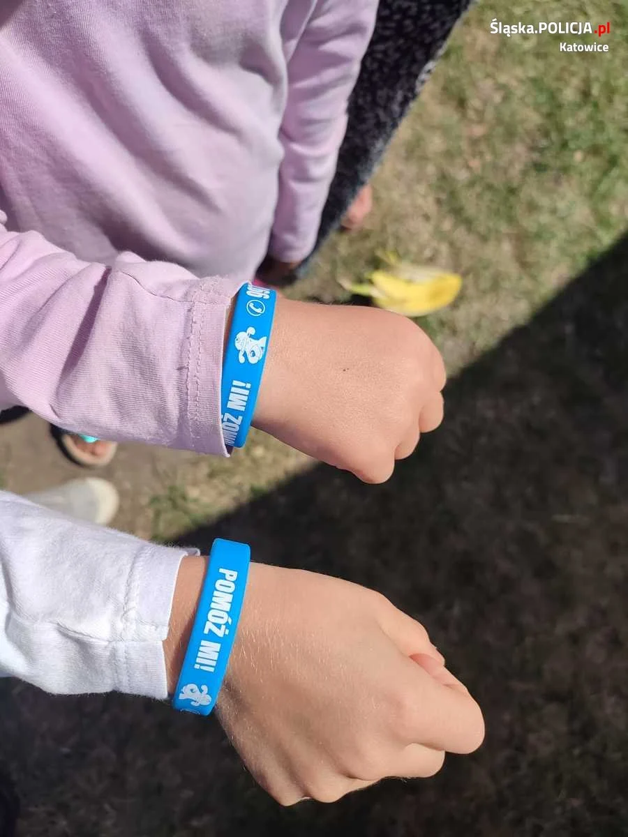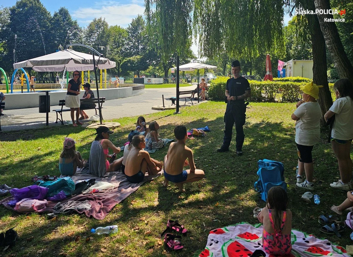 Policjanci z Zespołu Profilaktyki Społecznej katowickiej komendy odwiedzili dzieci ze świetlicy św. Jacka oraz dzieci i młodzież korzystającą z Kąpieliska w Dolinie Trzech Stawów, oraz Wodnego Placu Zabaw. Podczas spotkania policjanci przygotowali różne zadania dotyczące bezpiecznego wypoczynku oraz zachęcali dzieci i młodzież do wzięcia udziału w konkursie Komendy Głównej Policji „ARTYSTYCZNY przeWODNIK”. Uczestnicy spotkań, którzy prawidłowo odpowiadali na pytania oraz rozwiązali zadania, zostali nagrodzeni upominkami zwiększającymi bezpieczeństwo podczas wakacji tj.: kamizelkami i chustami odblaskowymi, kolorowankami, naklejkami, zakładkami do książek kampanii KMP Katowice „#Nie bajka o porwaniu”. Najmłodszych uczestników policjanci obdarowali „opaskami bezpieczeństwa” z napisem „Zgubiłem się! Pomóż mi!, na których znajduje się miejsce do wpisania numeru telefonu do opiekuna.