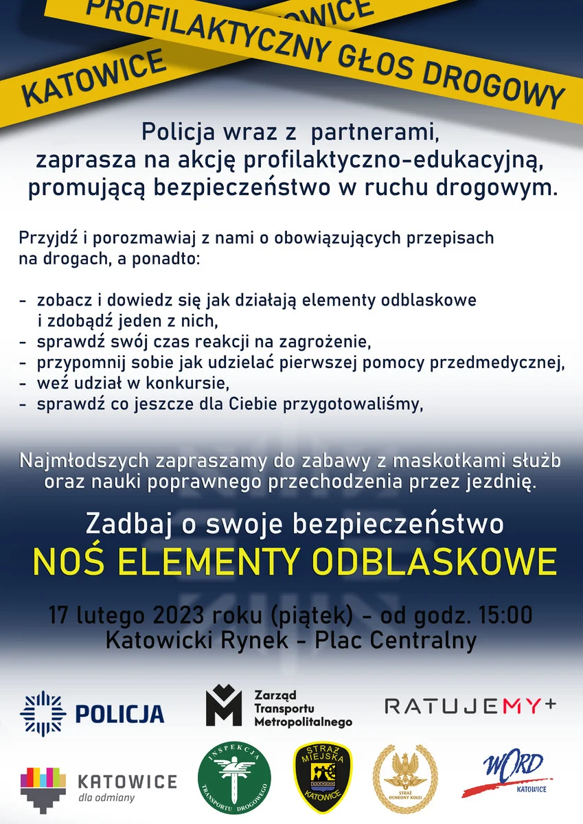17 lutego 2023 r. katowiccy policjanci serdecznie zapraszają na katowicki Rynek, gdzie przeprowadzą akcję profilaktyczną pn: „Profilaktyczny Głos Drogowy”.