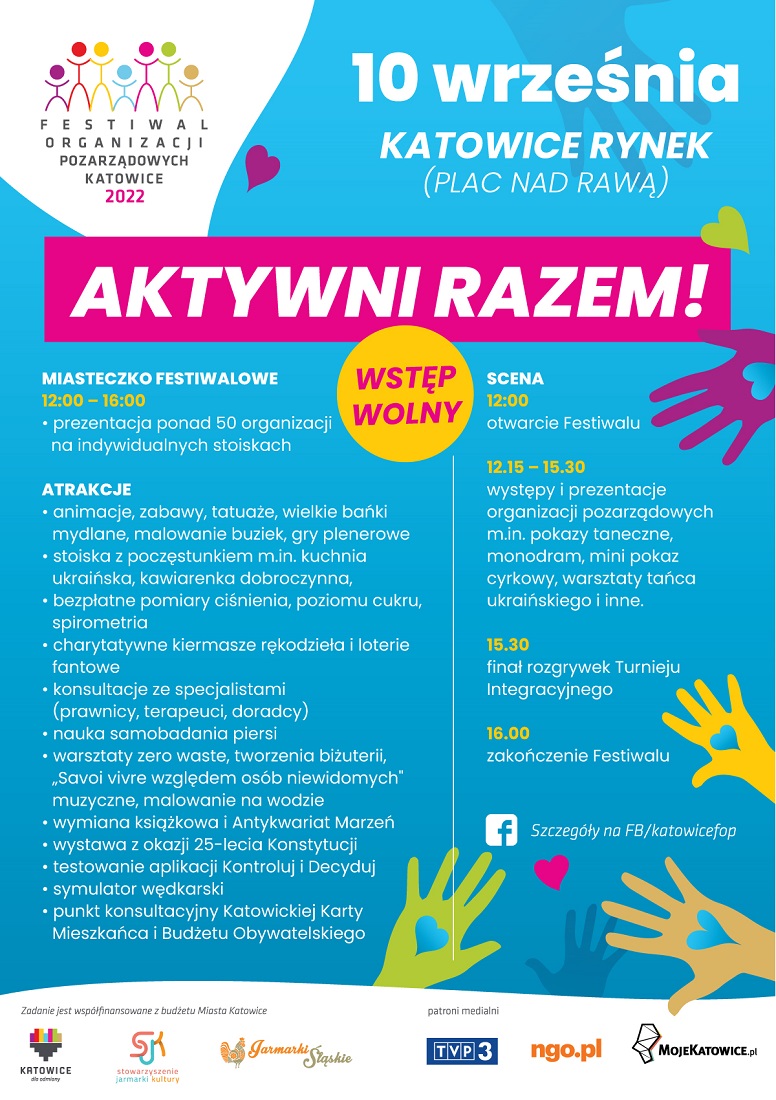 Już jutro 10 września br. katowiccy społecznicy i społeczniczki będą obchodzili swoje wspólne święto i jednocześnie będą mieli okazję, by zaprezentować swoją działalność mieszkańcom naszego miasta.
