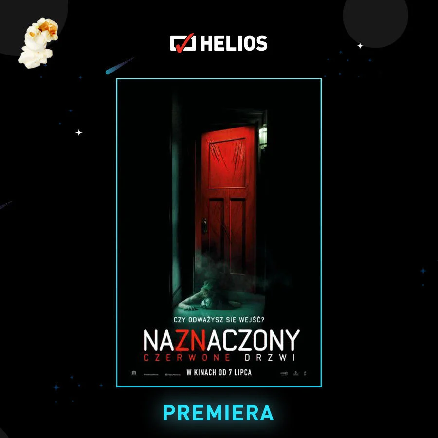 Miłośnikom niezwykłych filmów grozy przenoszących w mroczne zakamarki ludzkiej psychiki, Helios poleca film „Naznaczony: Czerwone Drzwi”. W ostatnim rozdziale przerażającej sagi rodziny Lambertów, powraca oryginalna obsada. Aby raz na zawsze pozbyć się demonów, Josh i Dalton, który jest w college’u, muszą zmierzyć się z mroczną przeszłością swojej rodziny oraz mnóstwem nowych i jeszcze bardziej przerażających strachów, które czyhają za czerwonymi drzwiami.