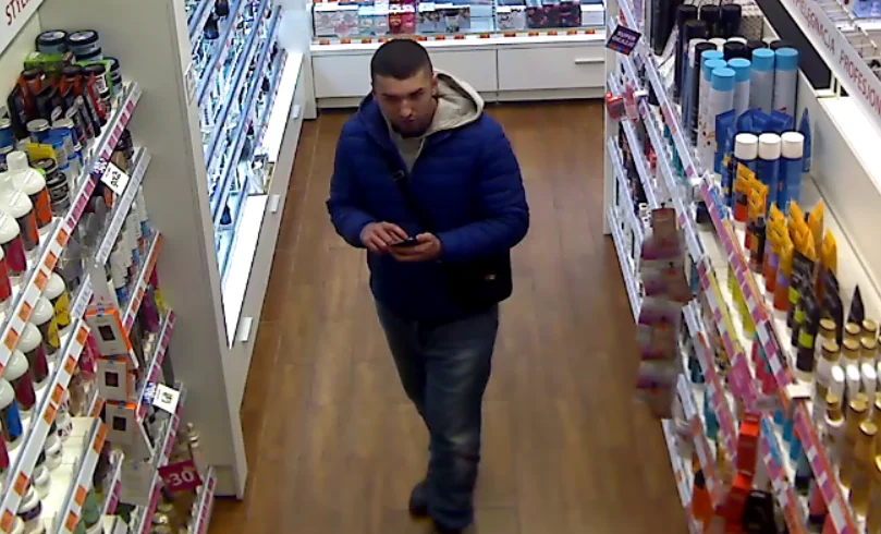 Publikujemy wizerunek podejrzanego o kradzież perfum. Poznajesz tego mężczyznę?