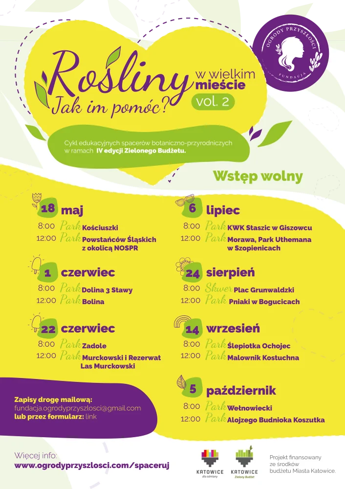 Nie wiesz co robić przez większość czasu w weekendy? To nie problem, ponieważ mamy na to rozwiązanie. Fundacja Ogrody Przyszłości organizuje wyjątkowe spacery po katowickich parkach. Czekają na was interesujące historie, ruch i przyjemnie spędzony czas. W tym roku czeka nas aż 14 spacerów do 14 różnych Parków Katowic.