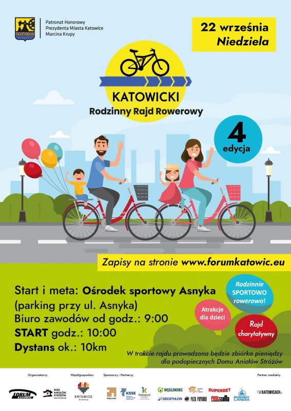 Czy można połączyć jazdę na rowerze z pomocą dzieciom? Taki plan na niedzielę mają uczestnicy IV Katowickiego Rodzinnego Rajdu Rowerowego. Już 22 września wyruszą na 10-kilometrową przejażdżkę, a wydarzeniu towarzyszyć będzie zbiórka na wsparcie podopiecznych Domu Aniołów Stróżów.