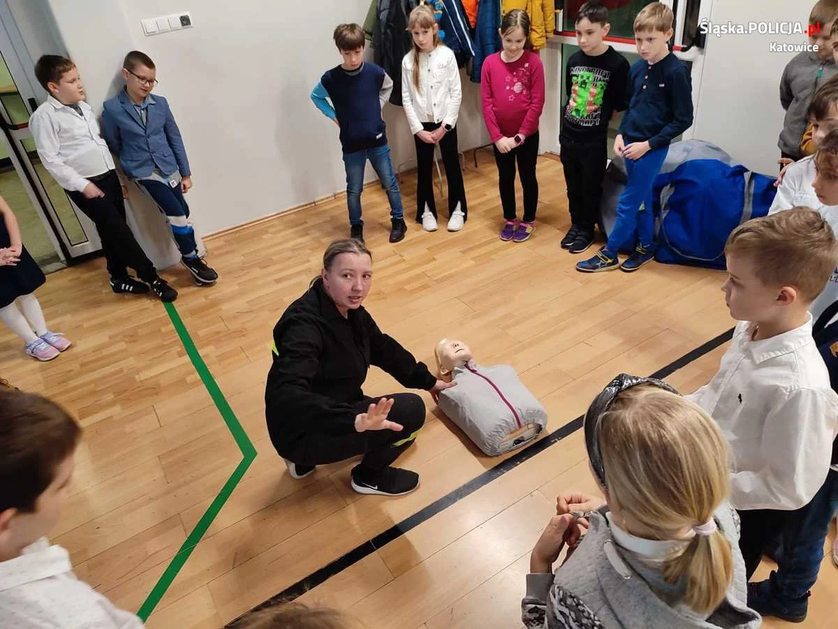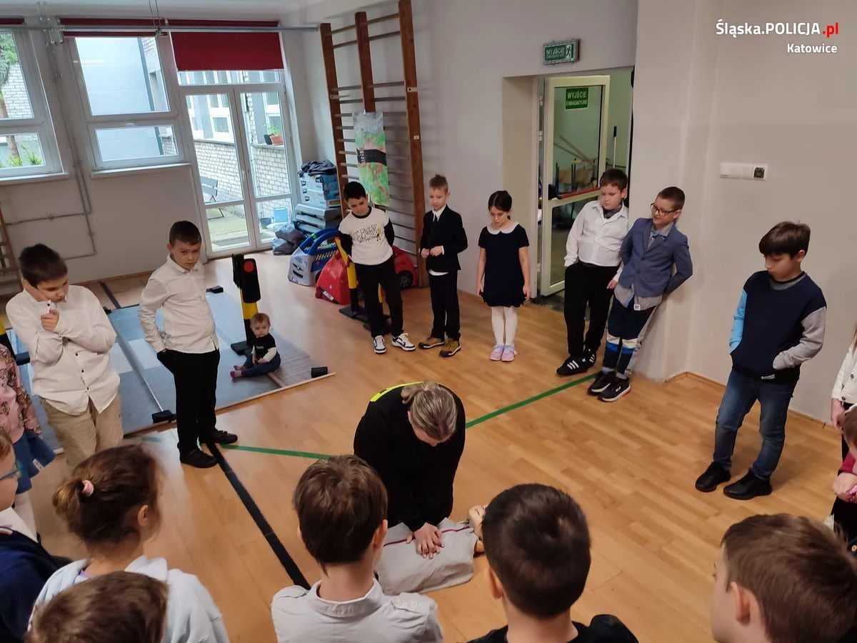 Szkoła Podstawowa nr 58 w Katowicach już po raz 20 – ty zorganizowała konkurs z wiedzy o bezpieczeństwie w ruchu drogowym. Uczniowie klas II z 11 katowickich szkół: Zespołu Szkolno – Przedszkolnego nr 3, Szkoły Podstawowej nr 9, 19, 27, 33, 36, 51, 53, 58, 59, 60 biorąc udział w konkursie, mieli okazję sprawdzić swoją wiedzę z bezpieczeństwa w ruchu drogowym w teorii i praktyce. Na początku uczestnicy w drużynach dwuosobowych rozwiązywali test wiedzy na tabletach. Następnie przechodzili przez stanowiska zadaniowe przygotowane przez policjantów, strażników miejskich i strażaków. Na policyjnym stanowisku profilaktycznym, gdzie na czas wydarzenia biblioteka szkolna zamieniła się w ulicę z bezpiecznym przejściem dla pieszych, uczniowie mieli na zadanie zaprezentować i omówić bezpieczne zachowania, jakie należy stosować, przechodząc przez ulicę. Za zaliczone zadanie dzieci otrzymywały od policjantów pieczątki i naklejki ze Sznupkiem oraz pamiątkowe zdjęcie w czapkach służbowych. Strażacy zaprezentowali dzieciom, jakie należy podjąć czynności podczas pierwszej pomocy, a następnie sprawdzali ich umiejętności.