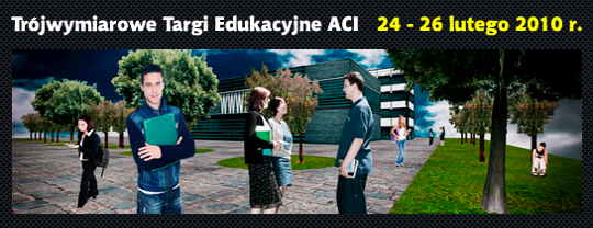 W dniach 24 – 26 lutego 2010 r. odbędzie się czwarta edycja Trójwymiarowych Targów Edukacyjnych ACI pod patronatem Ministerstwa Edukacji Narodowej oraz Ministerstwa Nauki i Szkolnictwa Wyższego.
