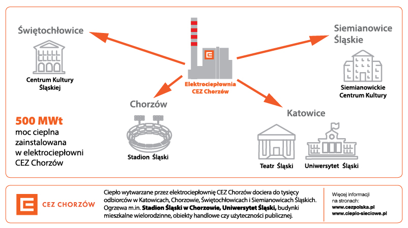 Ciepło sieciowe to produkt, z którego codziennie korzystają miliony odbiorców w całej Polsce. Gdyby większość budynków w polskich miastach była podpięta do sieci ciepłowniczej, jakość powietrza, którym oddychamy, uległaby znacznej poprawie. Wytwarzanie ciepła odbywa się bowiem w coraz nowocześniejszych instalacjach, spełniających najbardziej rygorystyczne normy emisyjne. Na terenie aglomeracji śląskiej jednym z największych i najnowocześniejszych producentów energii cieplnej i elektrycznej jest elektrociepłownia CEZ Chorzów. Wytwarzane ciepło CEZ Chorzów dostarcza lokalnemu dystrybutorowi, który za pośrednictwem sieci ciepłowniczej przesyła je do tysięcy odbiorców w Katowicach, Chorzowie, Świętochłowicach i Siemianowicach Śląskich.
