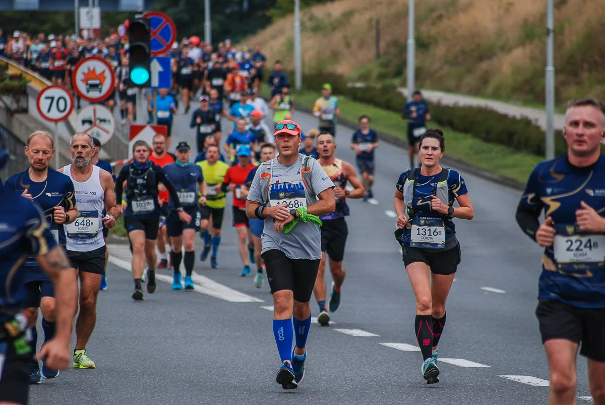 Na trasie maratonu, ultramaratonu i półmaratonu wystartowały dziś prawdziwe tłumy, dokładne liczby nie są nam jeszcze znane, ale kolorowy peleton biegaczy ciągnie się bez końca.
