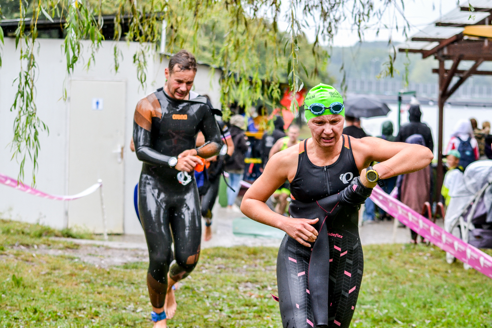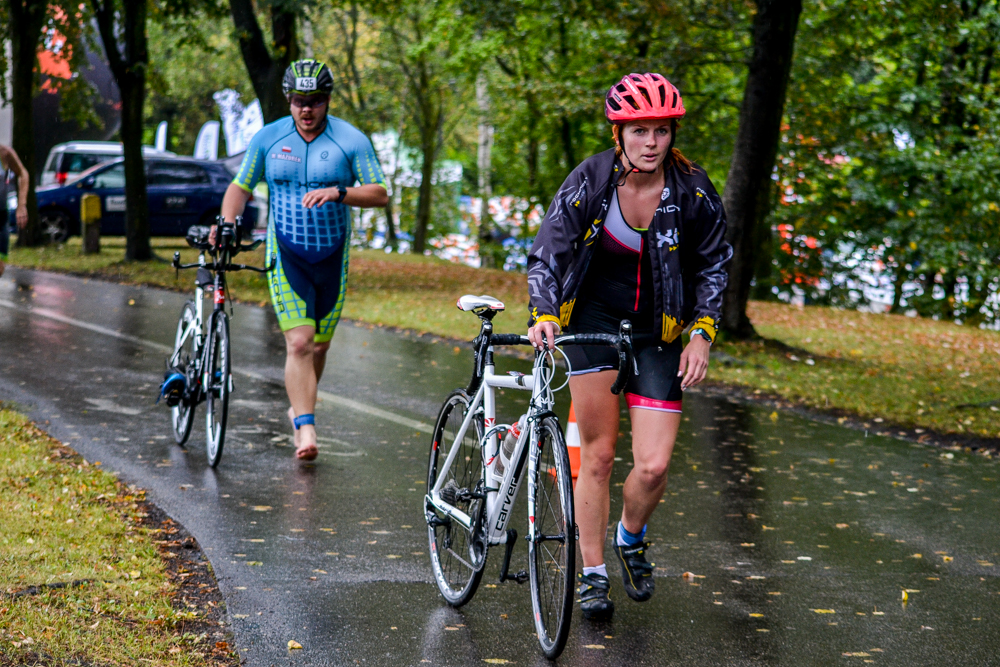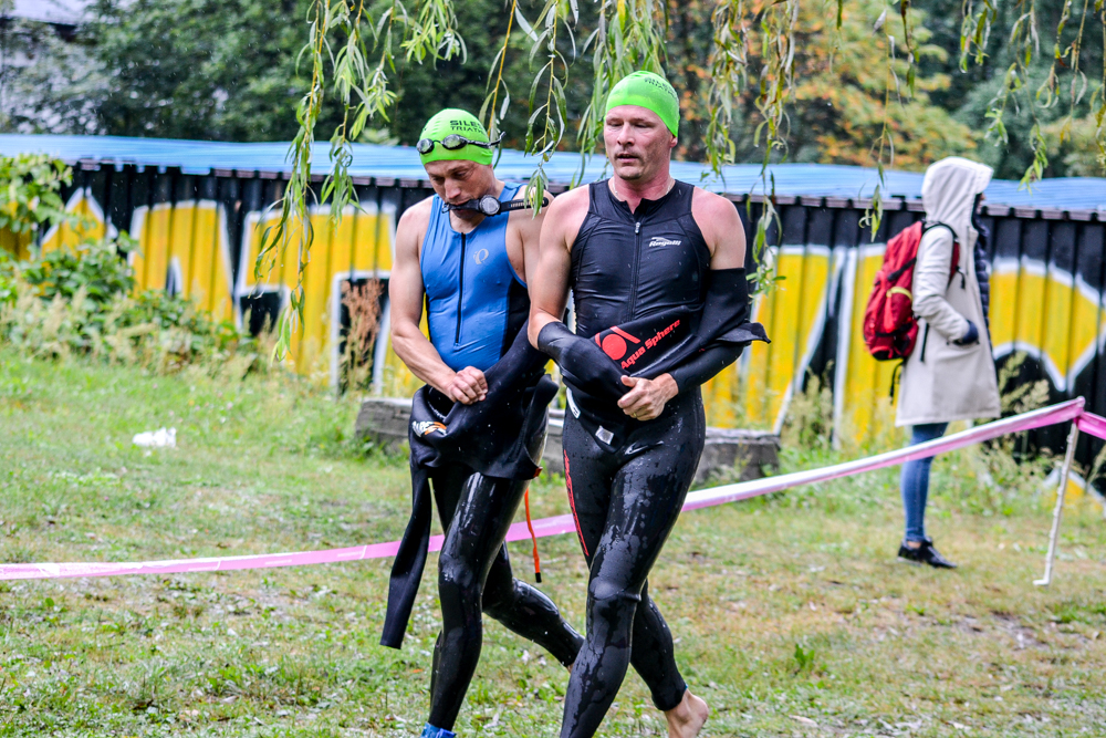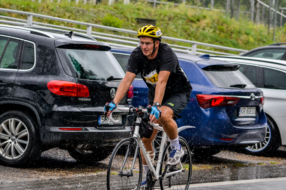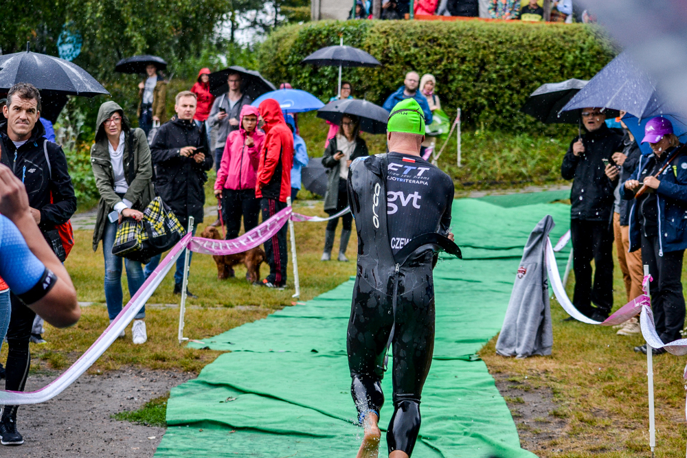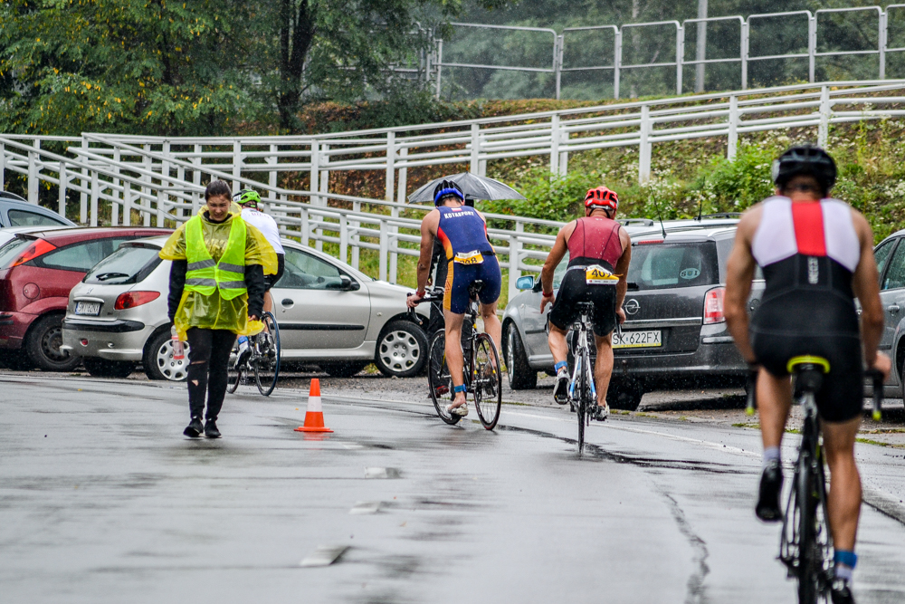 Deszcz, wiatr, chłód nie przeszkodziły zawodnikom w wejściu do wody, jeździe na rowerze i w końcu biegu na kilka kilometrów. Nie było lekko, obserwowaliśmy zmagania w Dolinie Trzech Stawów.