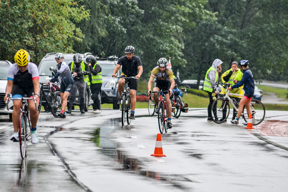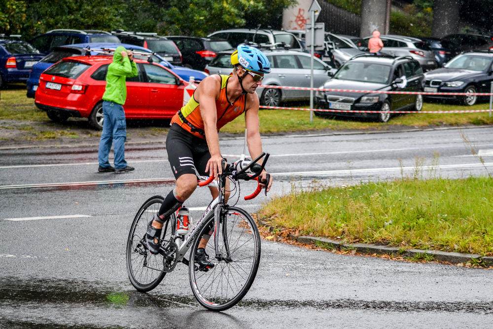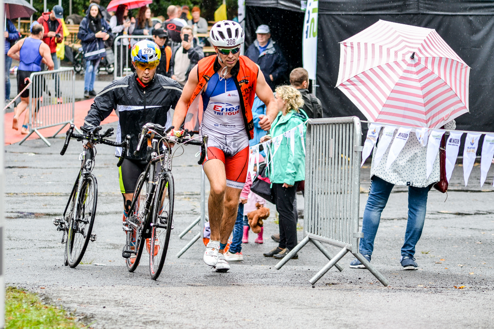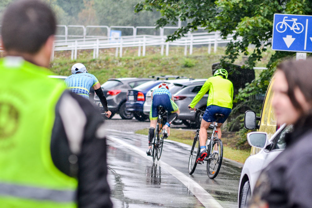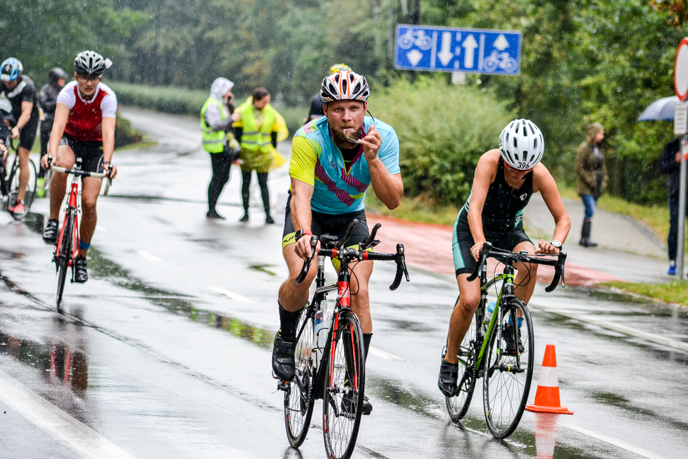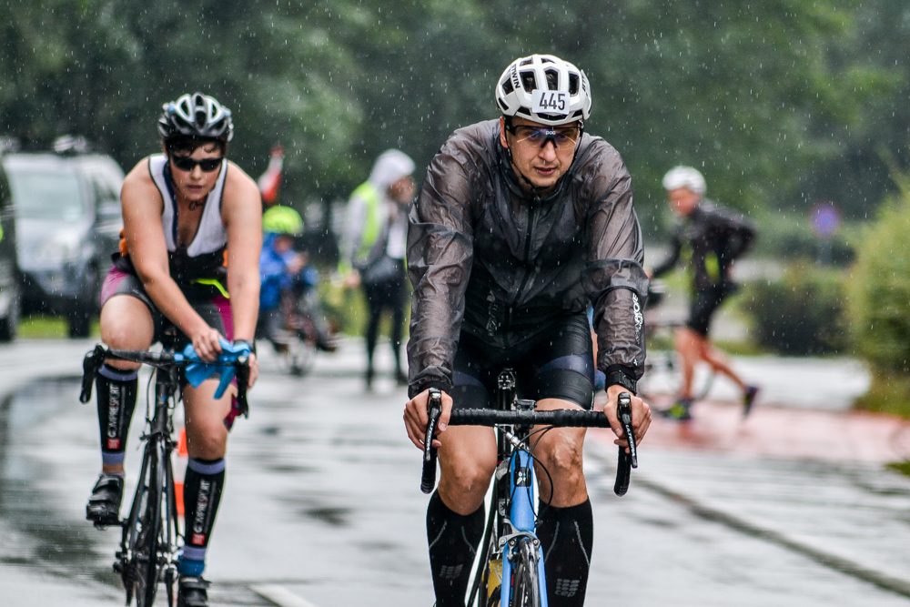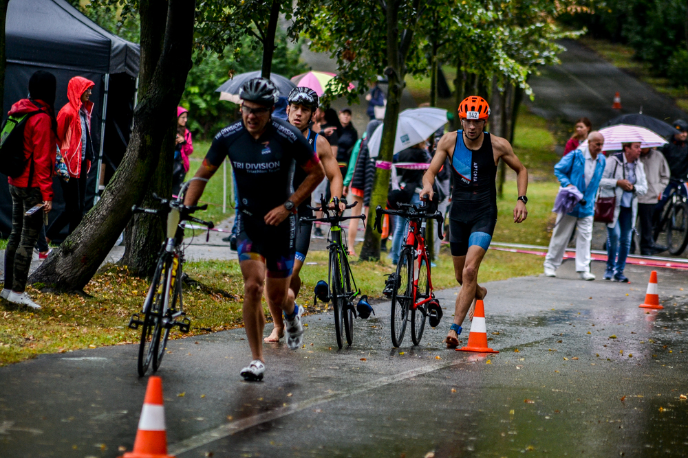 Deszcz, wiatr, chłód nie przeszkodziły zawodnikom w wejściu do wody, jeździe na rowerze i w końcu biegu na kilka kilometrów. Nie było lekko, obserwowaliśmy zmagania w Dolinie Trzech Stawów.