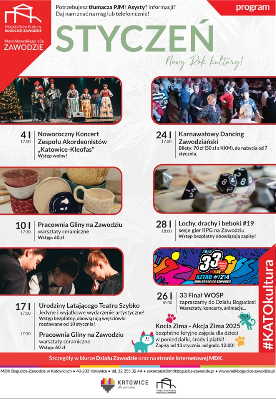 Nowy rok w Miejskim Domu Kultury zapowiada się różnorodnie – od koncertów, przez warsztaty artystyczne, po rozgrywki RPG i karnawałowe tańce. Zobaczcie, jakie wydarzenia przygotowano na styczeń.