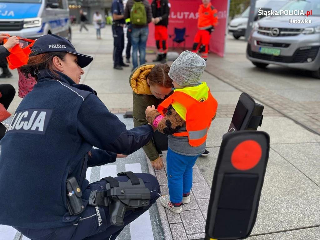 Katowiccy policjanci wraz z partnerami przeprowadzili akcję profilaktyczno-edukacyjną pn. „Świeć przykładem – noś odblaski”, w trakcie której promowali bezpieczeństwo w ruchu drogowym. Na katowickim Rynku można było porozmawiać o bezpieczeństwie pieszych, obowiązujących przepisach, a także o postawach zwiększających bezpieczeństwo w ruchu drogowym. Każdy pieszy otrzymał odblaskową opaskę, która zwiększa jego bezpieczeństwo po zmroku.