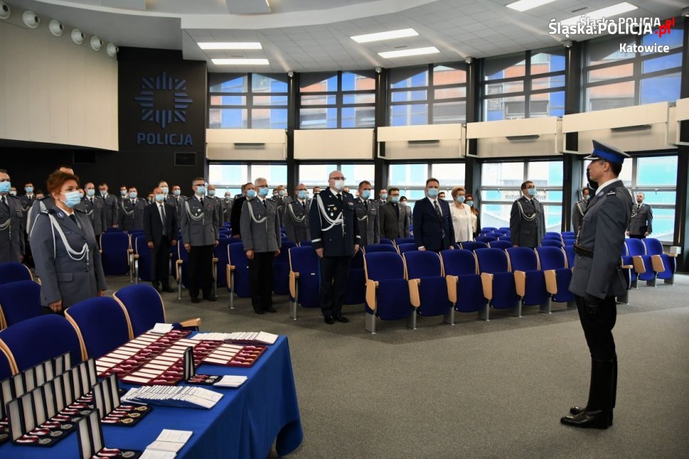 Komendant Wojewódzki Policji w Katowicach wręczył 25 mundurowym nadawane przez Ministra Spraw Wewnętrznych i Administracji Odznaki “Zasłużony Policjant”. Złotą odznaką wyróżnieni zostali: insp. Mariusz Krzystyniak – Zastępca Komendanta Wojewódzkiego Policji w Katowicach mł. insp. Grzegorza Pala – Naczelnik Wydziału Wywiadu Kryminalnego KWP w Katowicach, mł. insp. Joanna Świec-Rajca – Naczelnik Wydziału Doboru i Szkolenia KWP w Katowicach oraz mł. insp. Tomasz Ziółkowski – Zastępca Dowódcy Oddziału Prewencji Policji w Katowicach. Policjanci Komendy Miejskiej Policji w Katowicach również zostali w tym gronie wyróżnieni. Srebrną odznaką „Zasłużony Policjant” wyróżniony został insp. Paweł Barski – Komendant Miejski Policji w Katowicach, natomiast brązową odznaką wyróżniony został nadkom. Piotr Chrobok – Naczelnik Wydziału Sztab Policji Komendy Miejskiej Policji w Katowicach. Za długoletnią służbę srebrną odznaką wyróżniony został kom. Ryszard Szmidt – Zastępca Naczelnika Wydziału dw. z Przestępczością Przeciwko Mieniu KMP w Katowicach, który również awansował na stopień nadkomisarza policji.