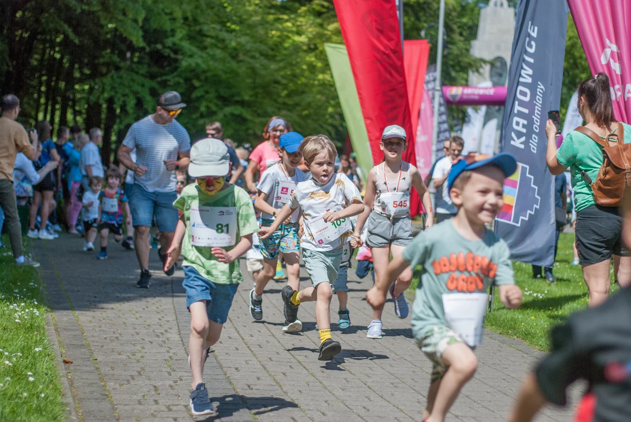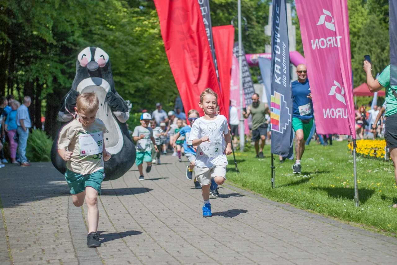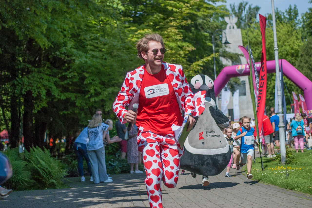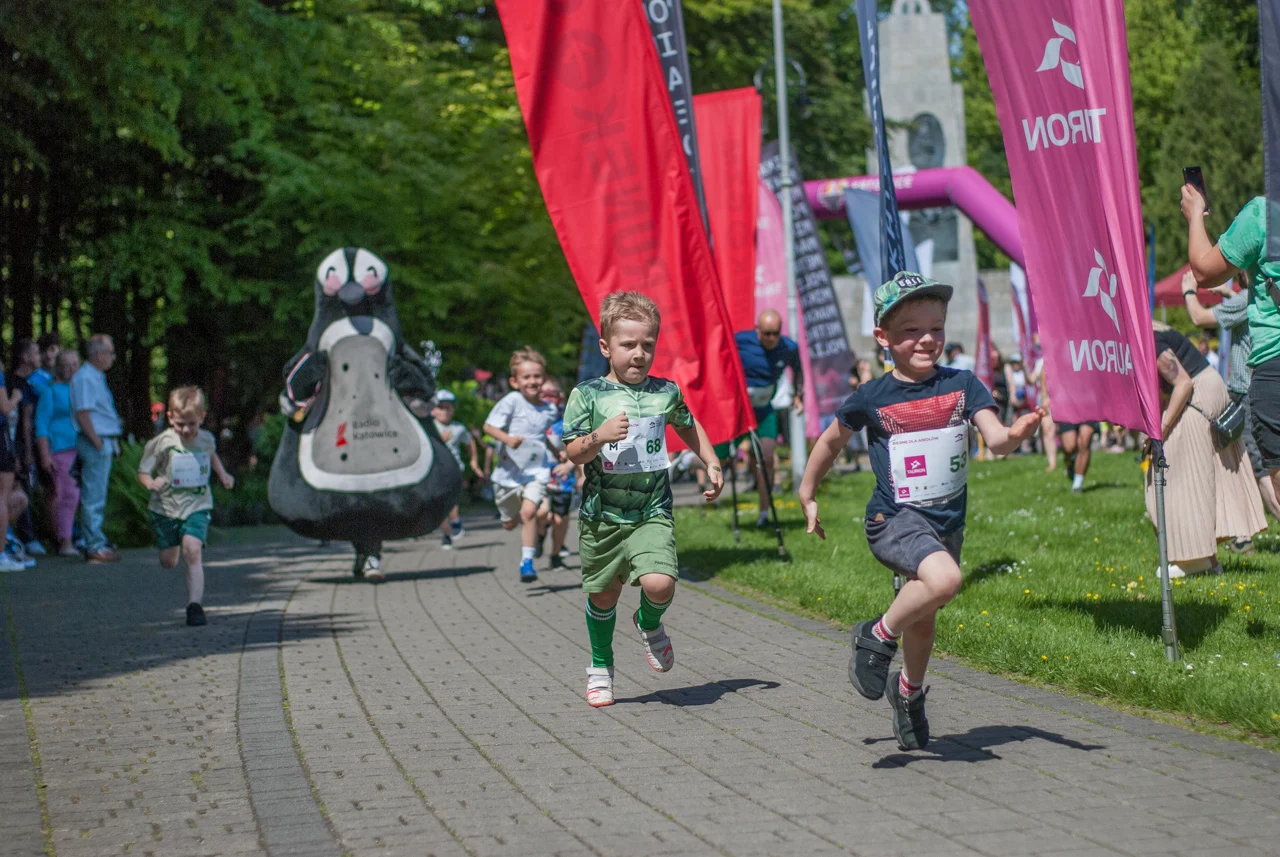 Prawdziwe tłumy biegaczy, w każdym wieku, pojawiły się dziś w samym centrum Parku Kościuszki. Sportowe zmagania rozpoczęto równo o godzinie 10:00 biegami dla najmłodszych, począwszy od tych w wieku od 11 do 13 lat, a kończąc na biegach dla przedszkolaków. Tym ostatnim na krótkiej trasie dookoła głównego parkowego placu towarzyszył pingwinek z Radia Katowice.