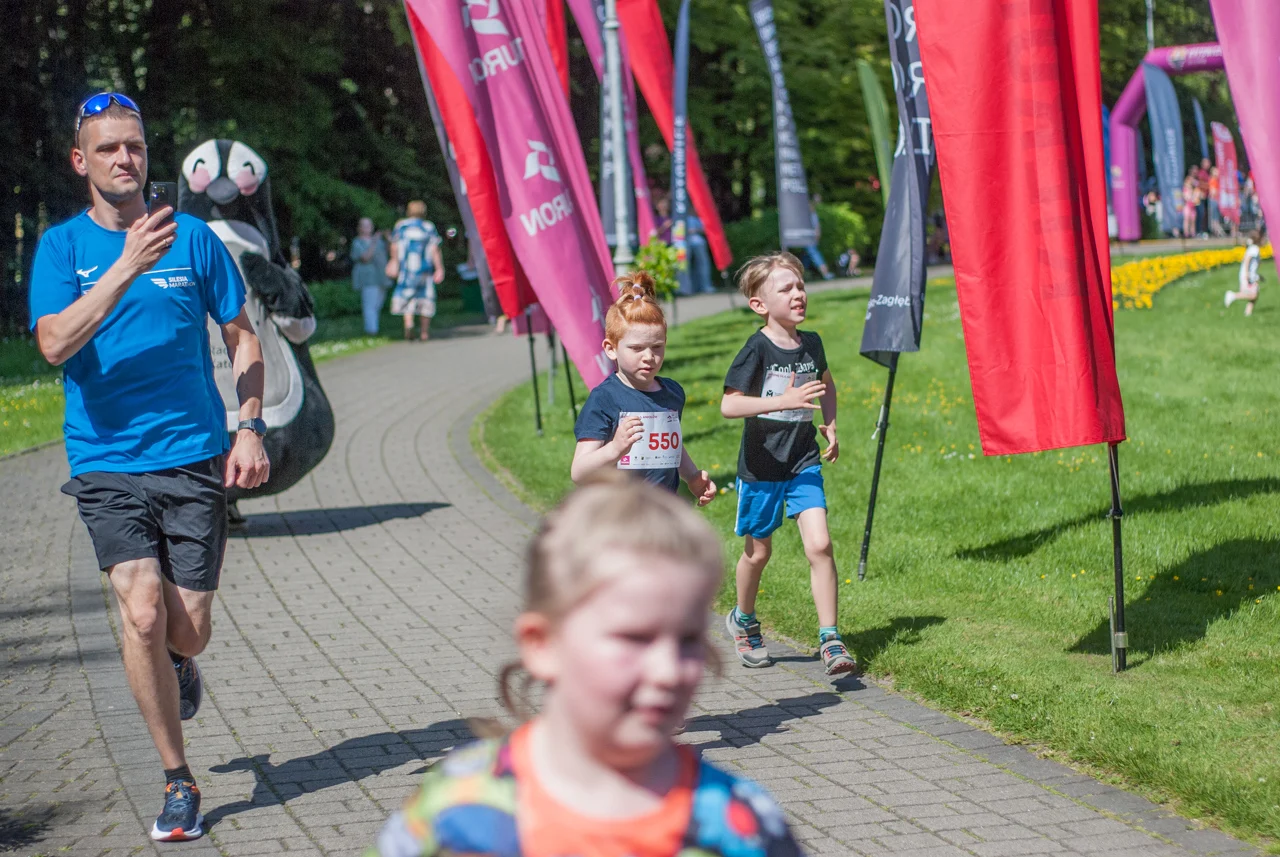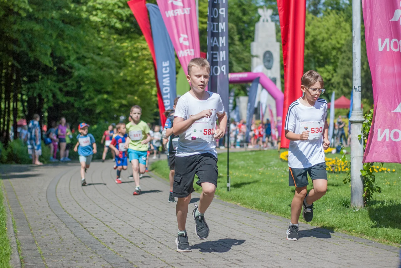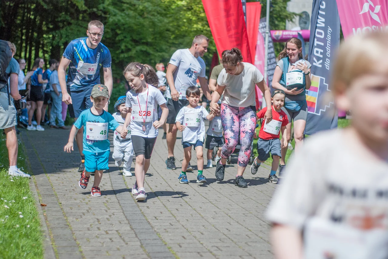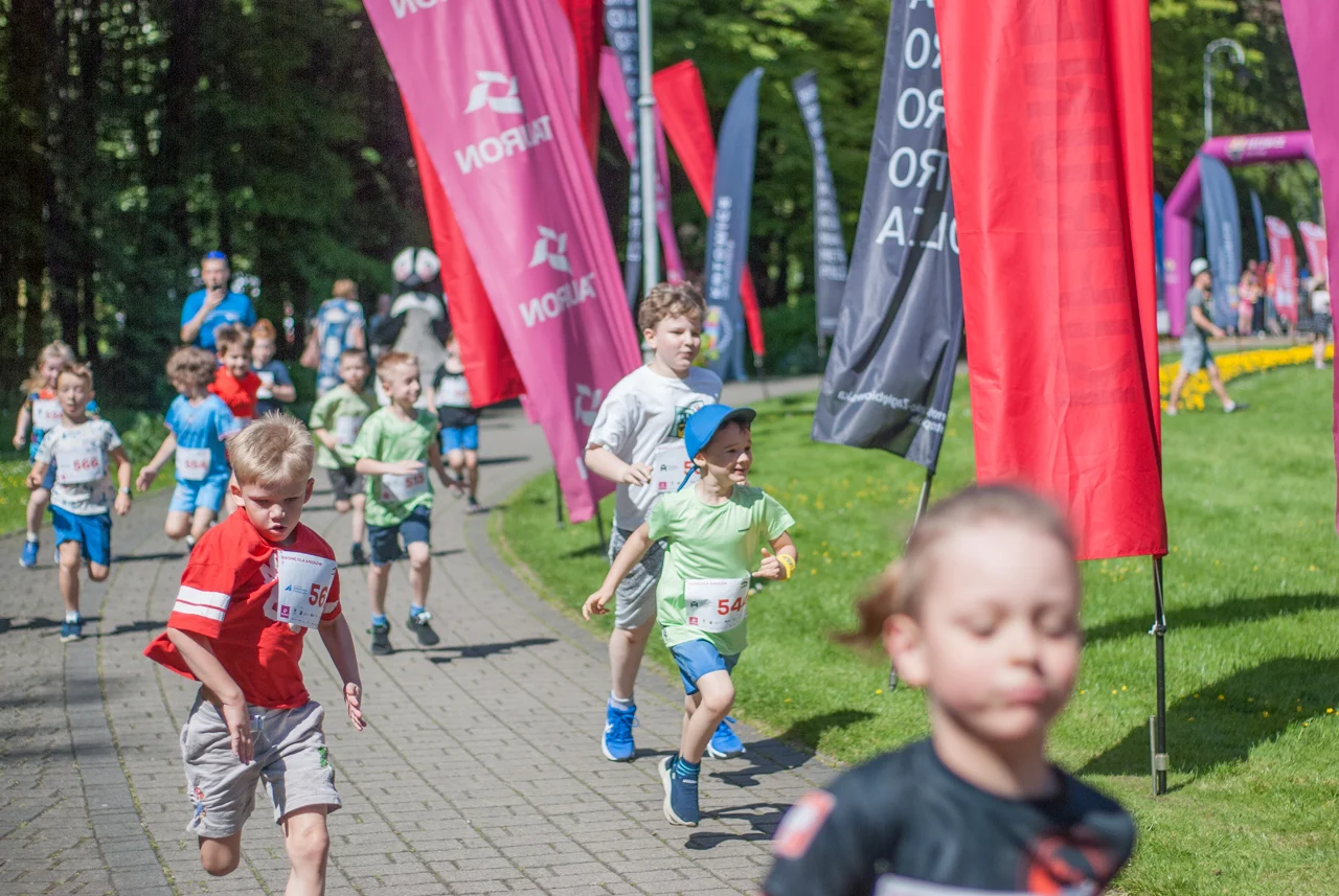Prawdziwe tłumy biegaczy, w każdym wieku, pojawiły się dziś w samym centrum Parku Kościuszki. Sportowe zmagania rozpoczęto równo o godzinie 10:00 biegami dla najmłodszych, począwszy od tych w wieku od 11 do 13 lat, a kończąc na biegach dla przedszkolaków. Tym ostatnim na krótkiej trasie dookoła głównego parkowego placu towarzyszył pingwinek z Radia Katowice.