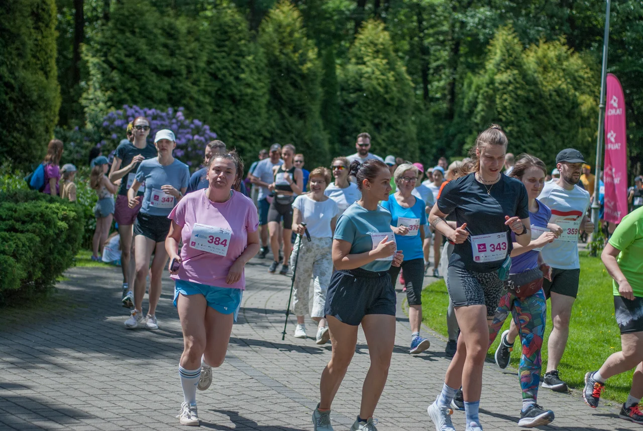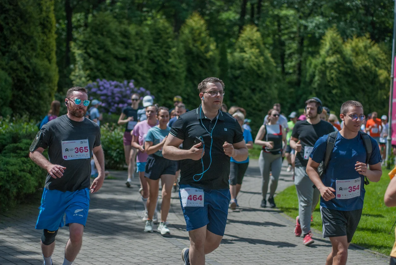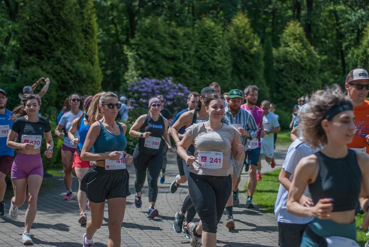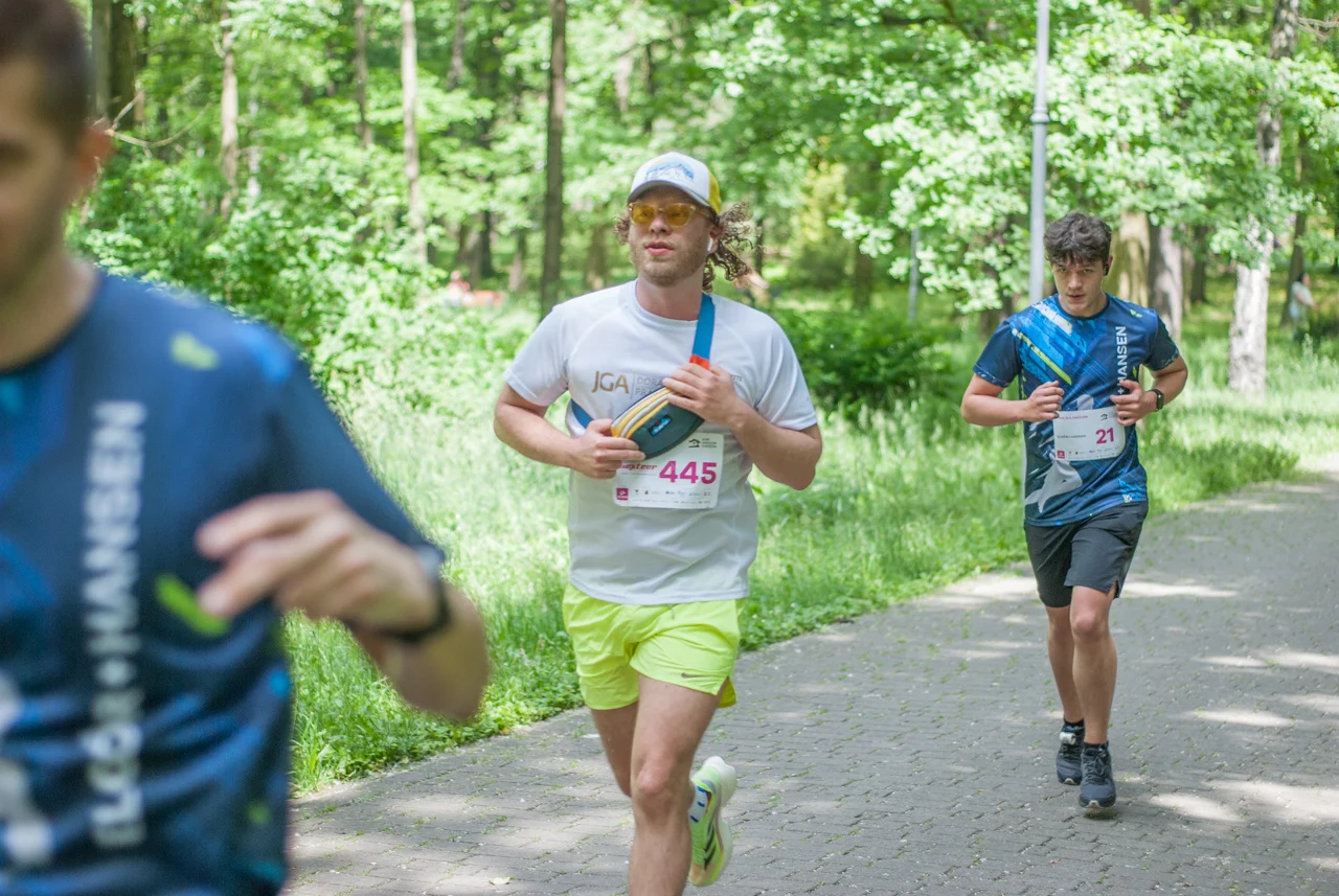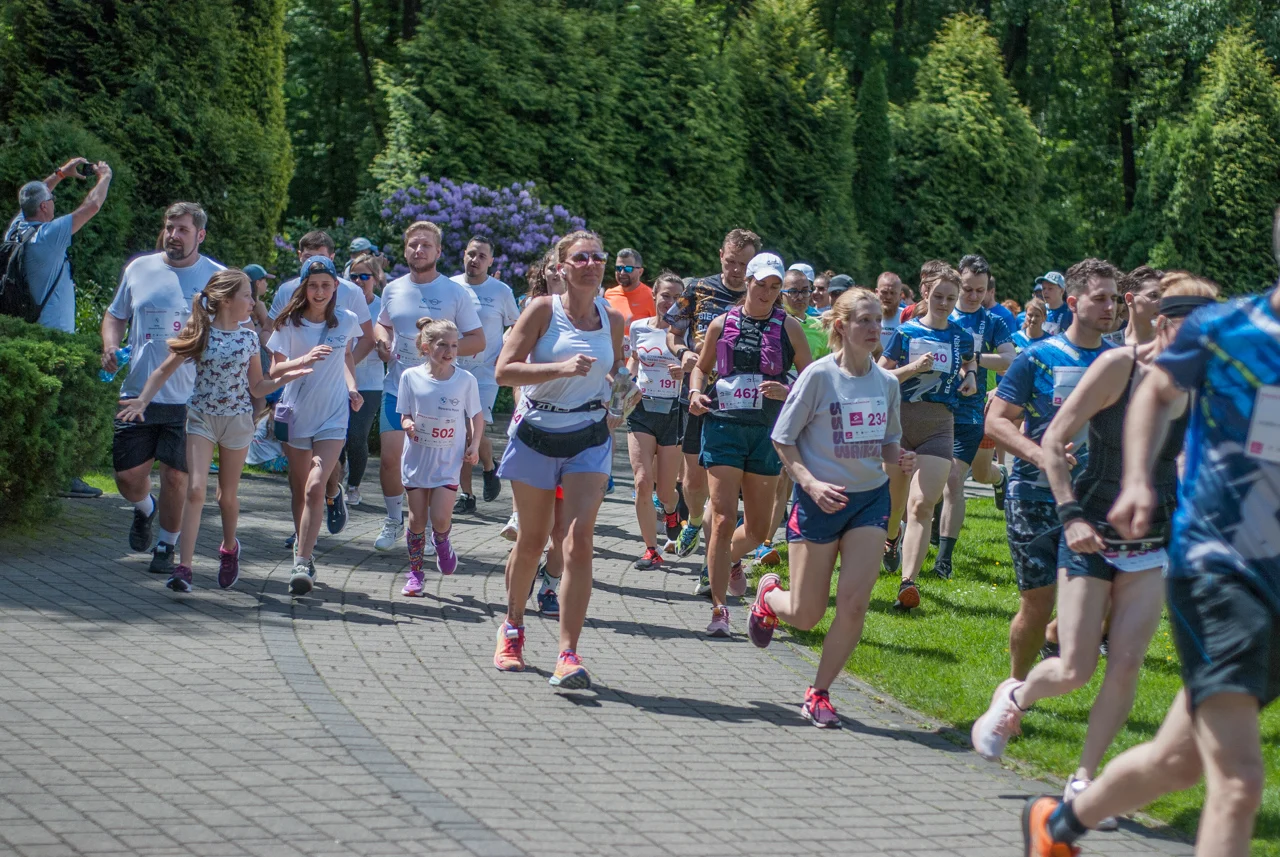 O 11:30 wystartowali zawodnicy biorący udział w biegu głównym na dystansie 5 km. Czekały na nich dwie pętle liczące 2,5 km, prowadzące po trasie którą standardowo, co sobotę, truchtają uczestnicy parkrun Katowice. Tu uczestników było już kilkuset.