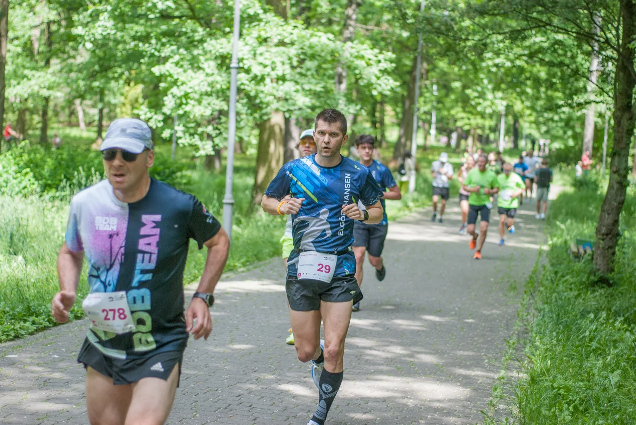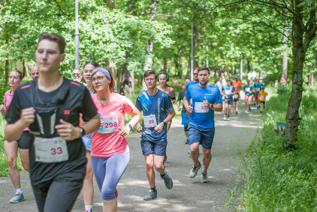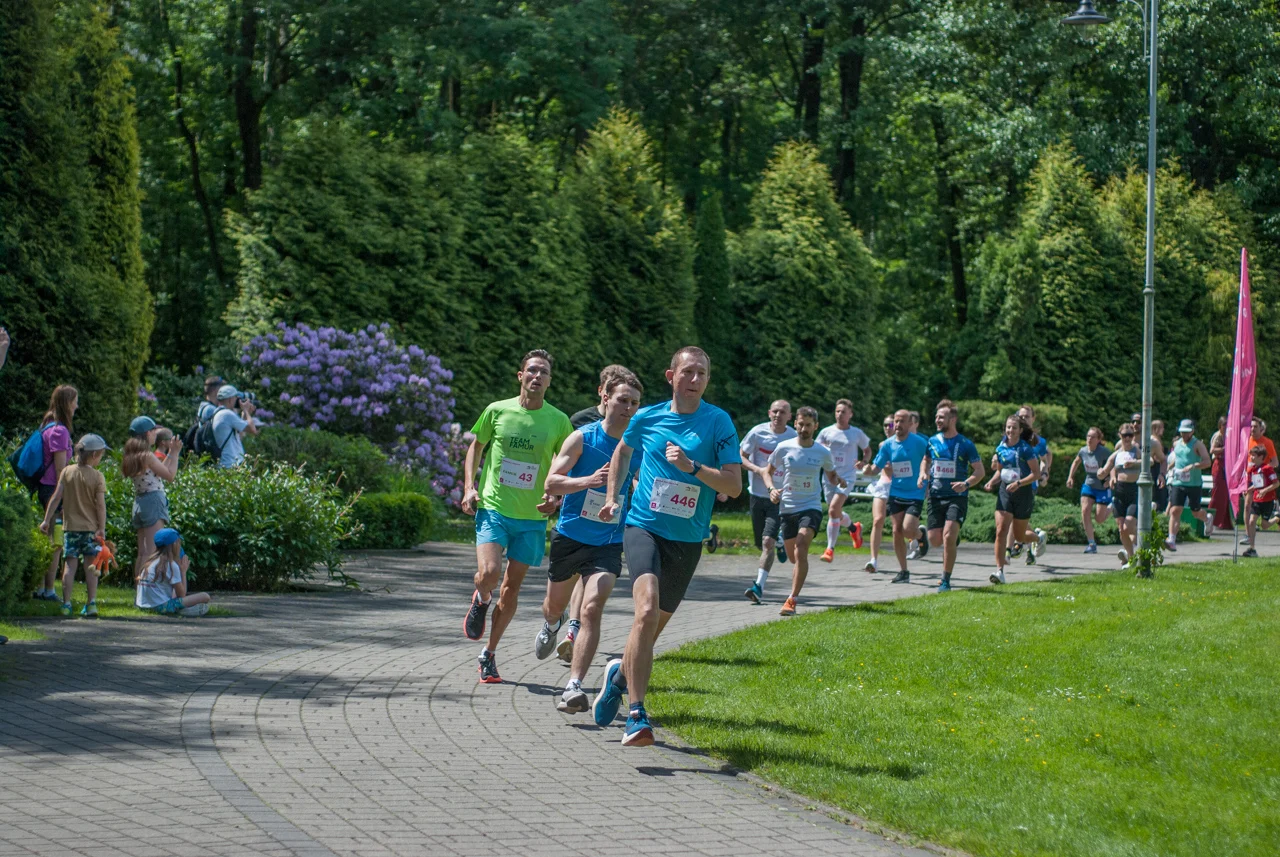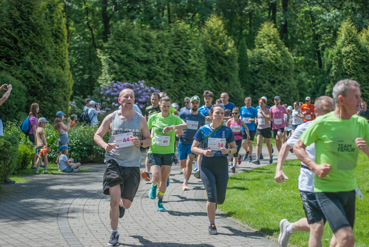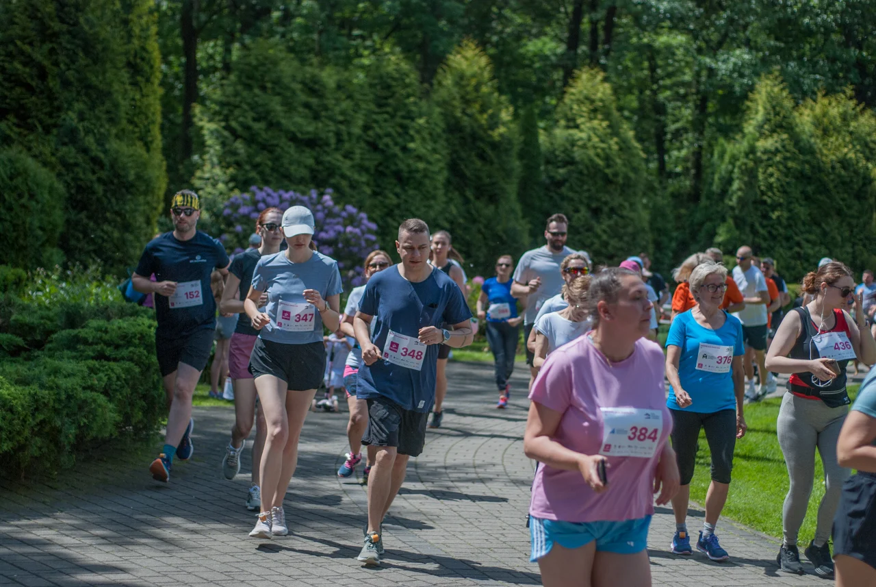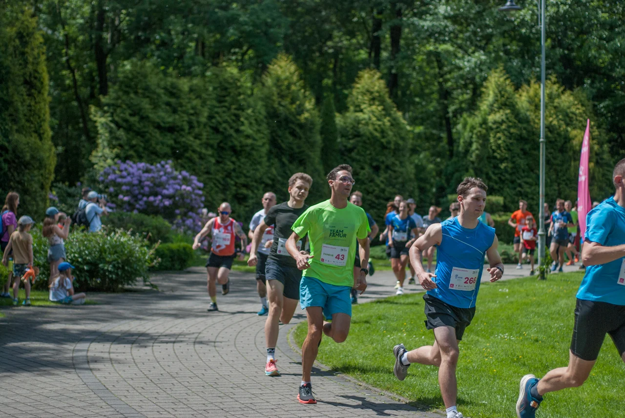 O 11:30 wystartowali zawodnicy biorący udział w biegu głównym na dystansie 5 km. Czekały na nich dwie pętle liczące 2,5 km, prowadzące po trasie którą standardowo, co sobotę, truchtają uczestnicy parkrun Katowice. Tu uczestników było już kilkuset.