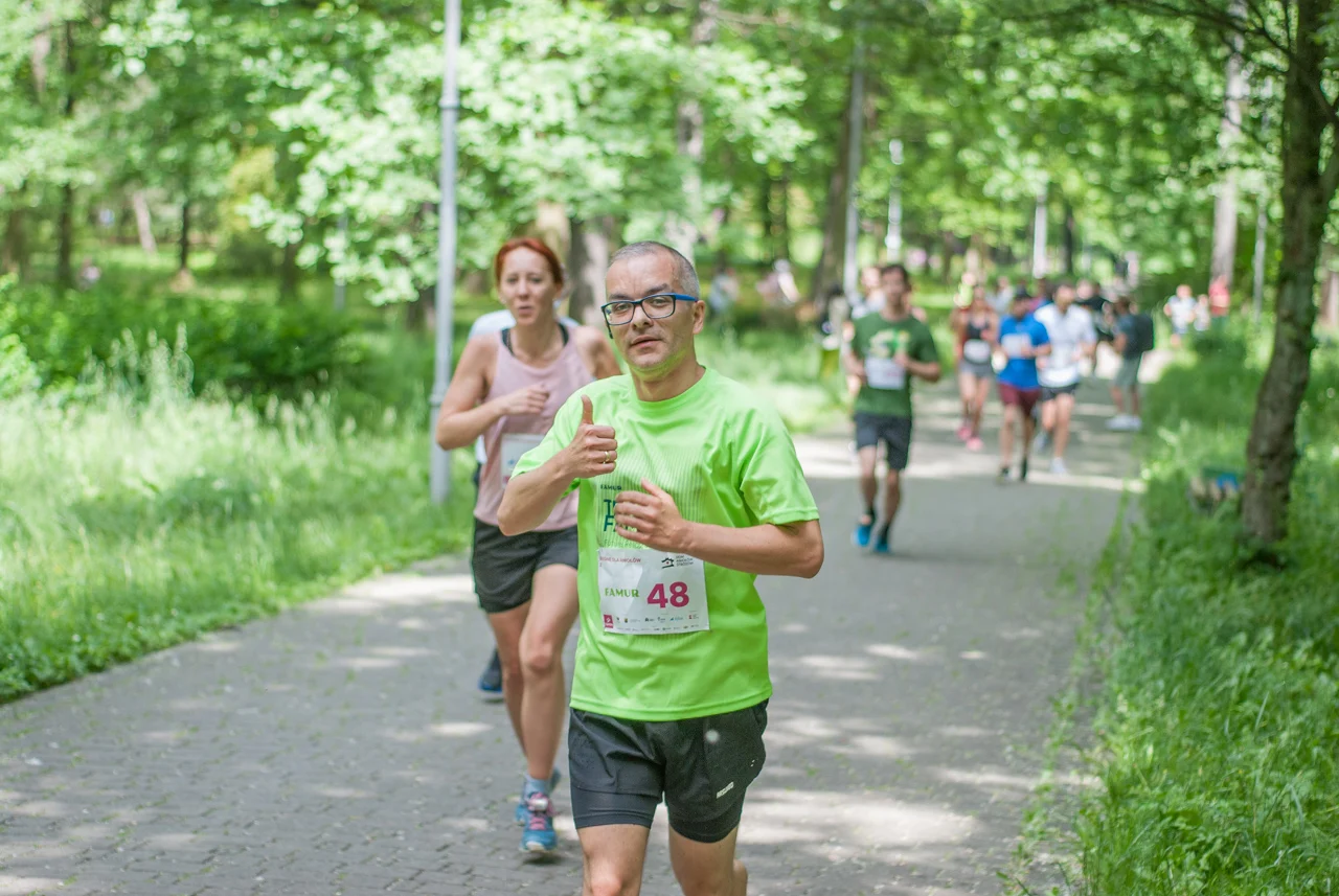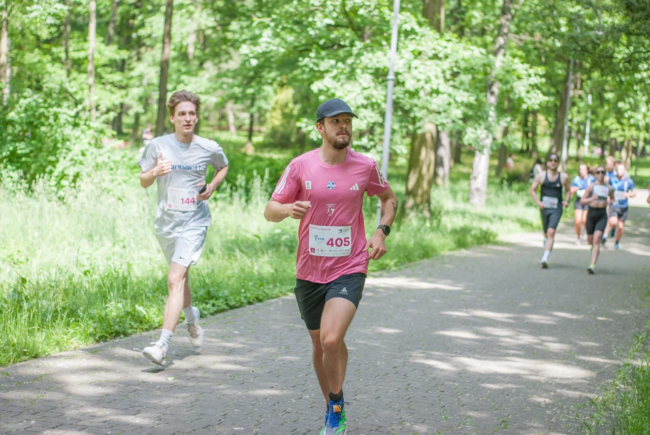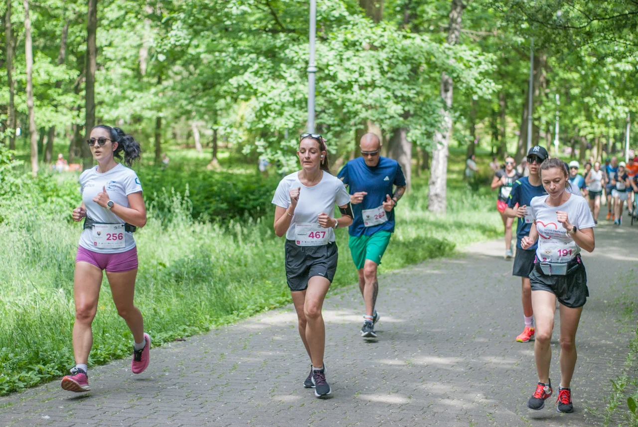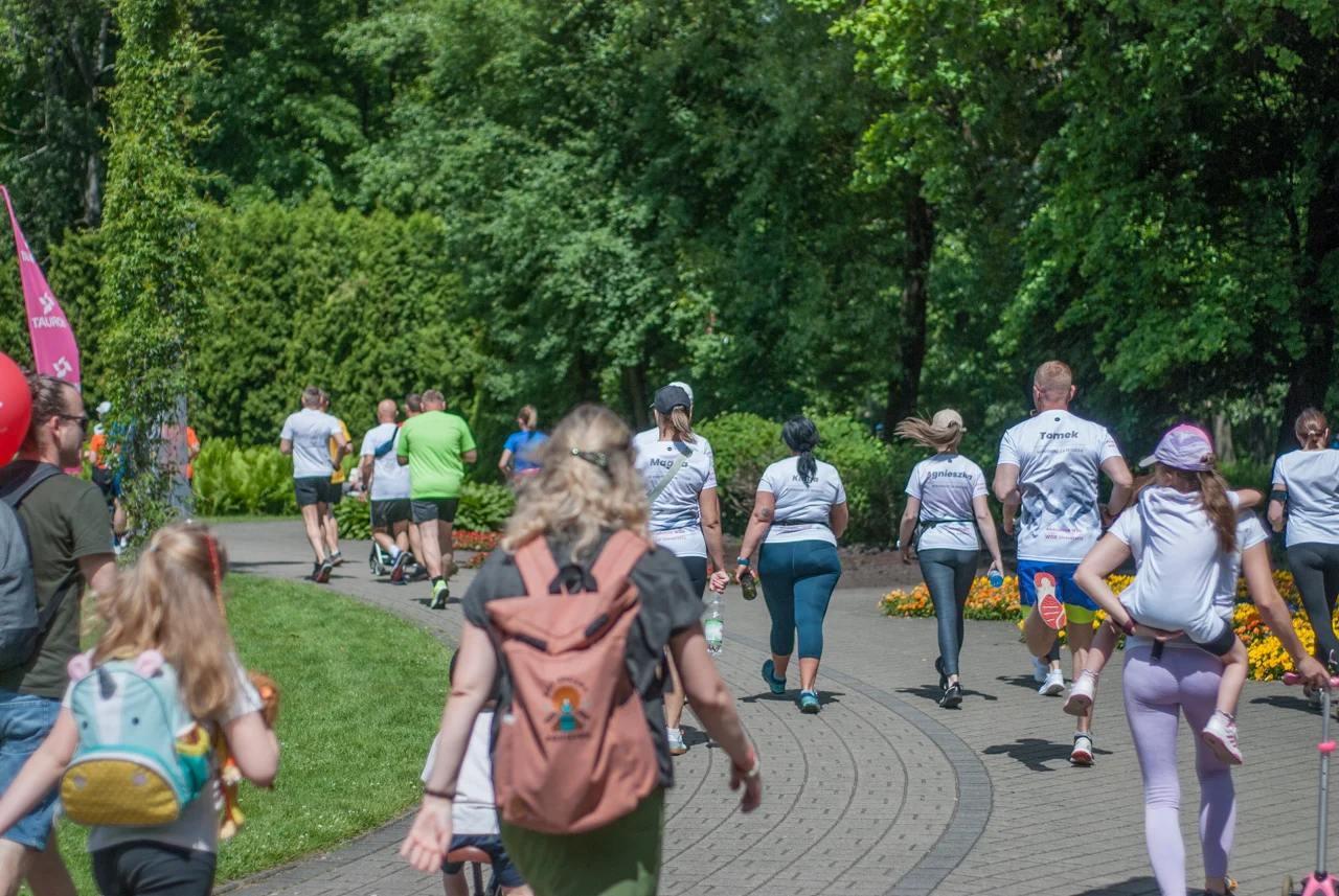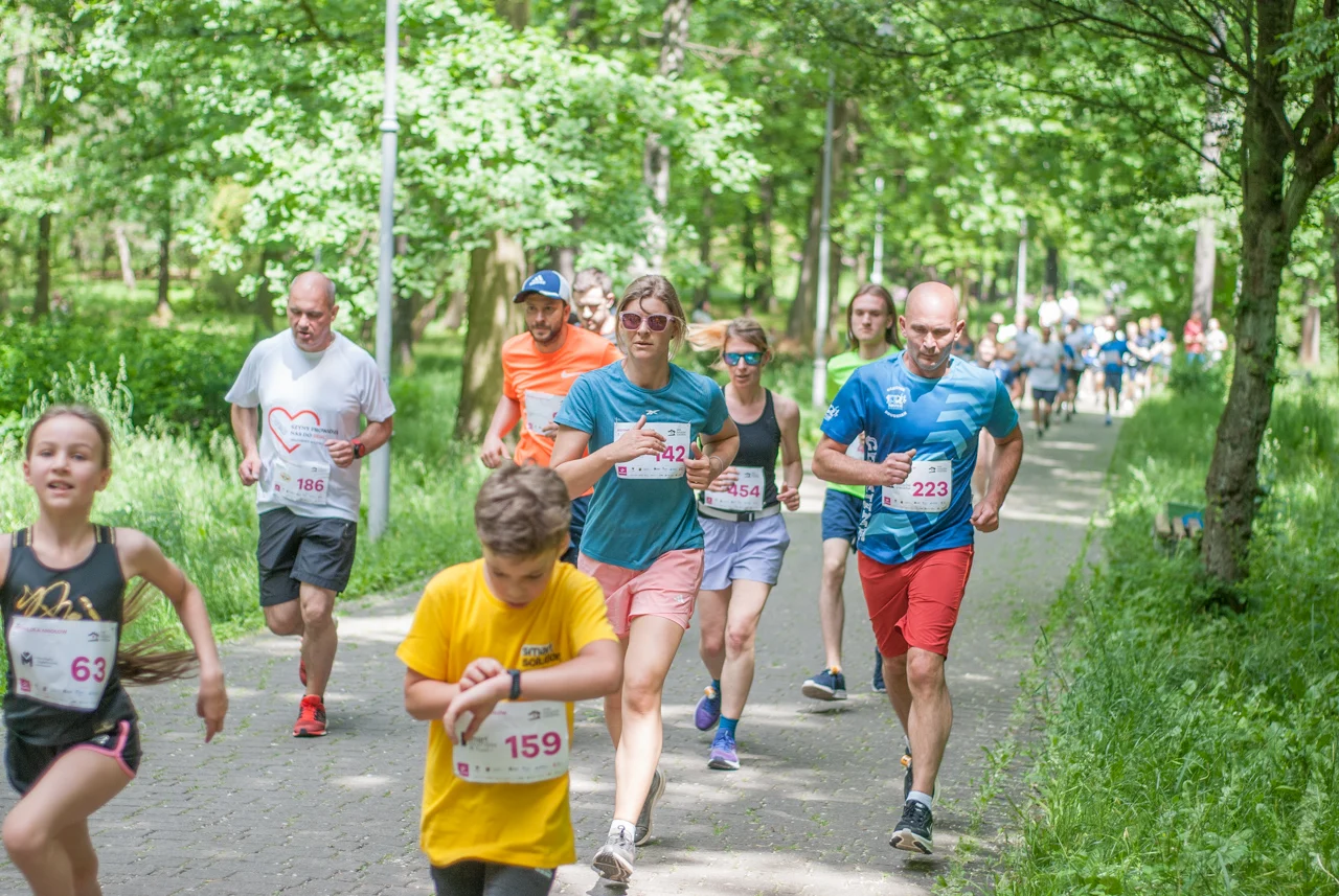 O 11:30 wystartowali zawodnicy biorący udział w biegu głównym na dystansie 5 km. Czekały na nich dwie pętle liczące 2,5 km, prowadzące po trasie którą standardowo, co sobotę, truchtają uczestnicy parkrun Katowice. Tu uczestników było już kilkuset.