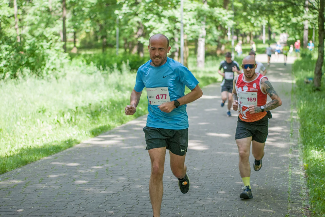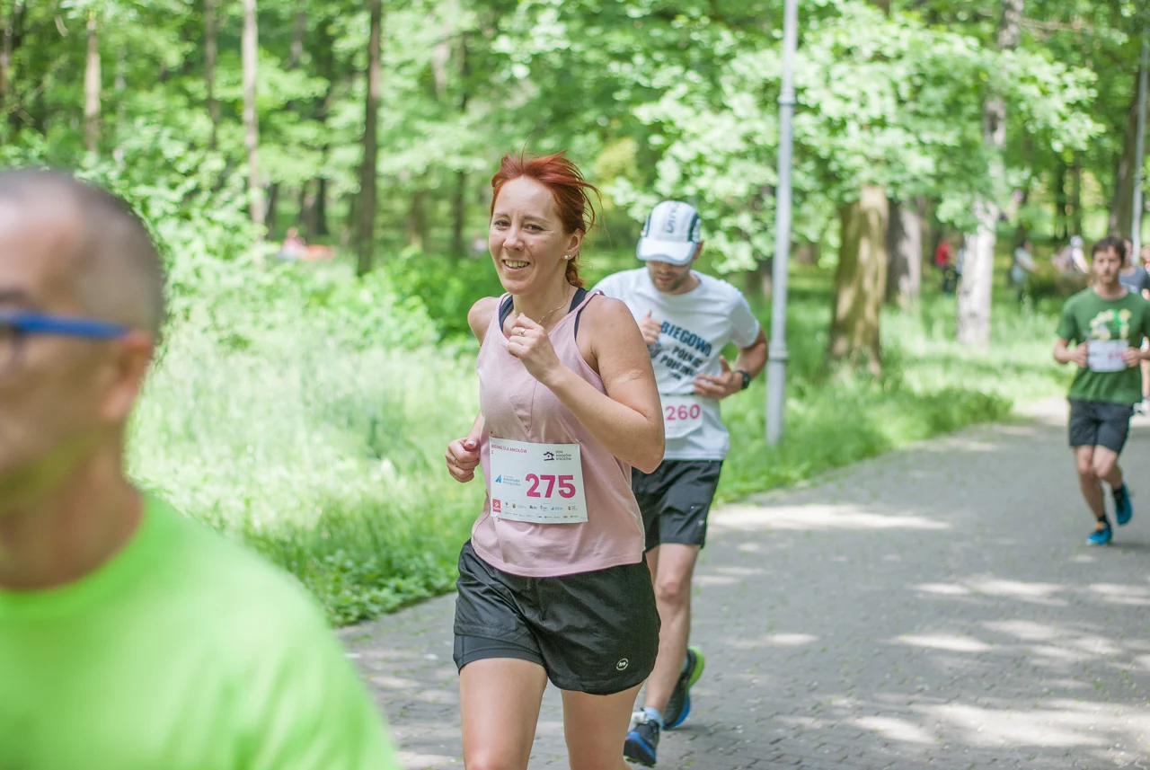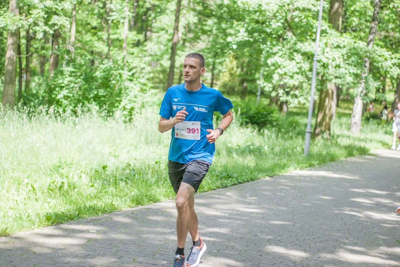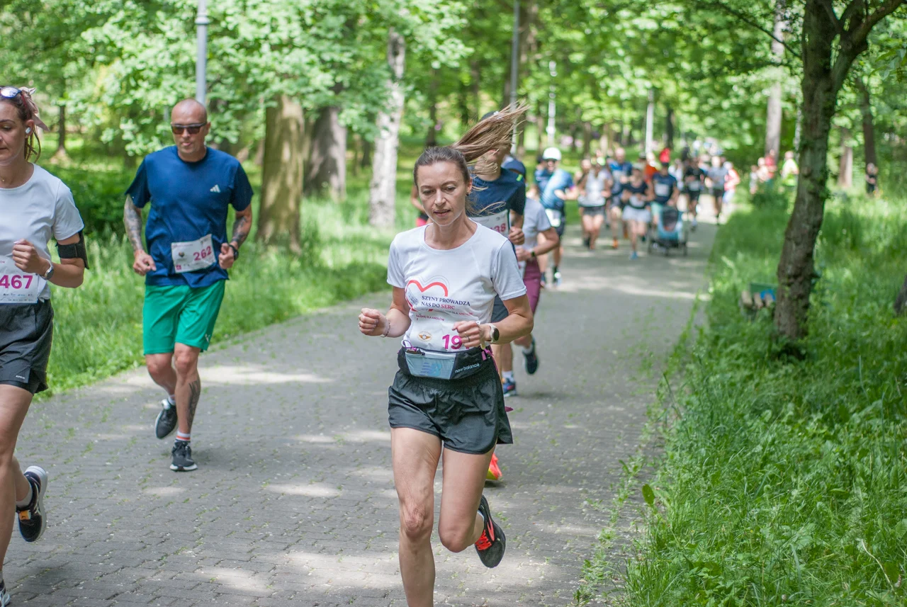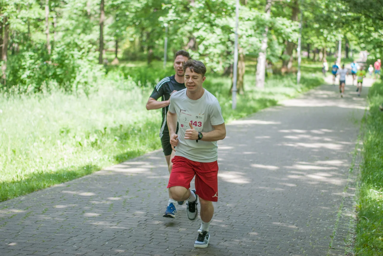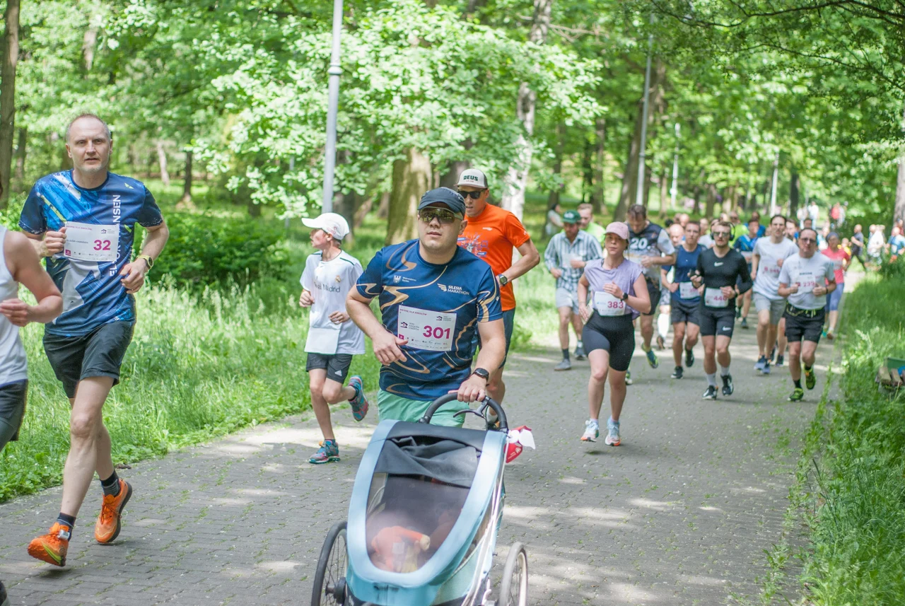 O 11:30 wystartowali zawodnicy biorący udział w biegu głównym na dystansie 5 km. Czekały na nich dwie pętle liczące 2,5 km, prowadzące po trasie którą standardowo, co sobotę, truchtają uczestnicy parkrun Katowice. Tu uczestników było już kilkuset.