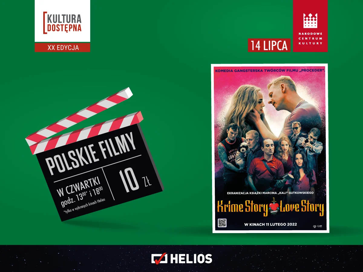 14 lipca kinomani znajdą się w samym środku gangsterskich porachunków za sprawą filmu „Krime Story. Love Story”. Historia inspirowana prawdziwymi wydarzeniami, opisana w książce rapera Marcina „Kaliego” Gutkowskiego, jest jak współczesna ekranizacja „Romea i Julii”. Miasto gniewu, a w nim dzielnica, w której nikt nie ma lekko… Doborowa obsada i muzyka to mocne atuty tego filmu.