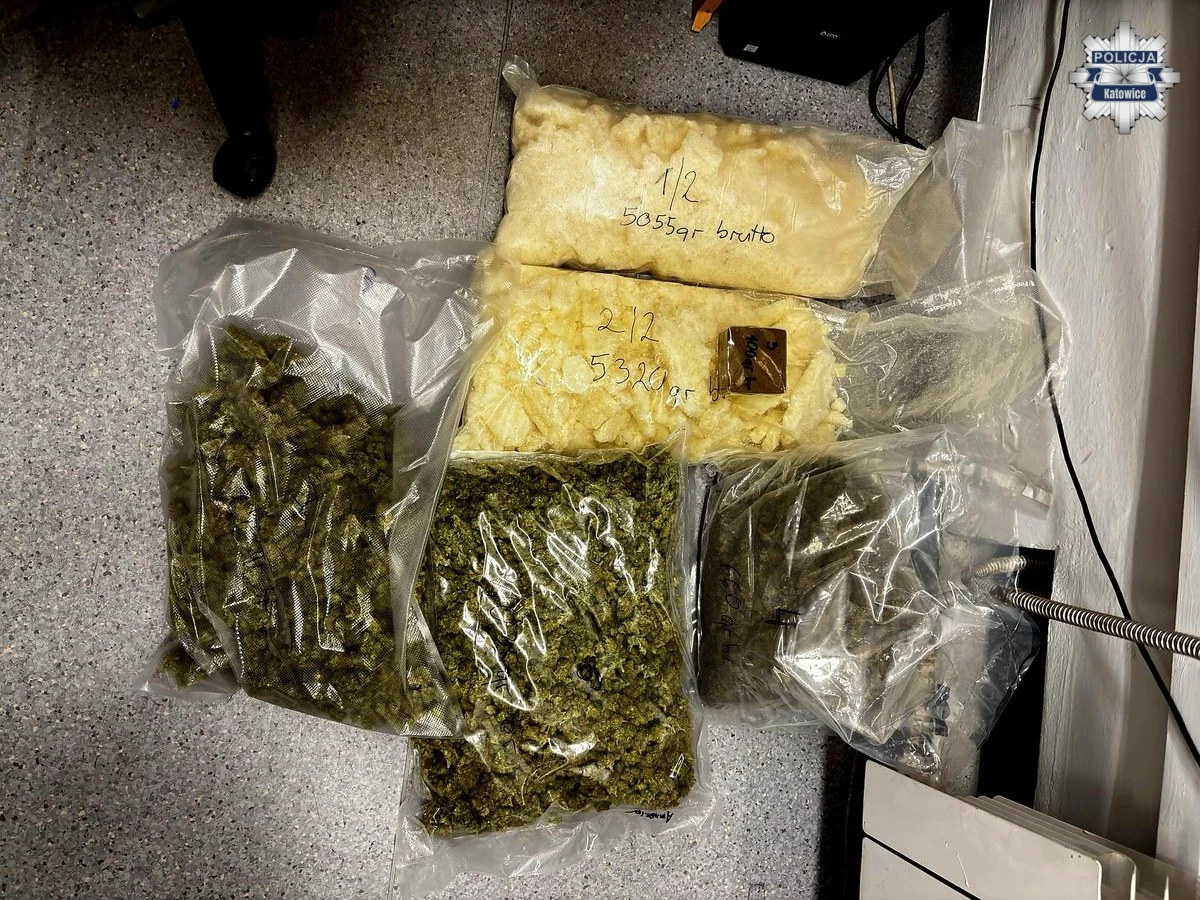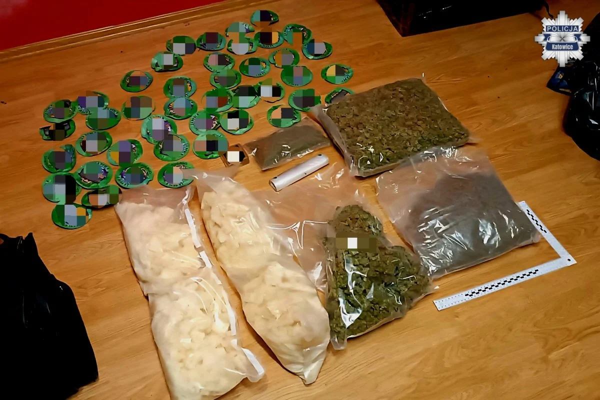 Szeroko zakrojone działania i współpraca kryminalnych z Wydziału d/w z PrzestępczościąNarkotykową i Pseudokibiców Komendy Miejskiej Policji w Katowicach oraz Zarządu w Radomiu Centralnego Biura Śledczego Policji, wsparte przez policjantów z komisariatu w Knurowie, doprowadziły do zatrzymania trzech mężczyzn powiązanych ze środowiskiem pseudokibiców. Podejrzanym zarzuca się obrót znacznymi ilościami środków odurzających, za co trafili do tymczasowego aresztu. Policjanci zabezpieczyli w tej sprawie łącznie blisko 25 kilogramów narkotyków.
