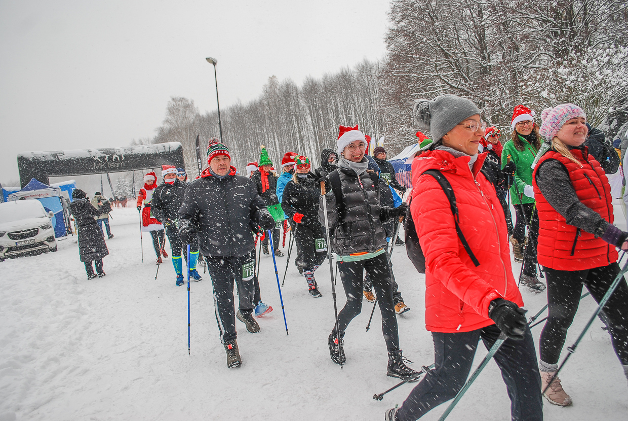 Chwilę po 12:00 ruszyła kolejna grupa biegaczy, tym razem na trasę o długości 5 kilometrów, a 5 minut po nich zwodnicy dyscypliny nordic walking. Na tym dystansie towarzyszyliśmy uczestnikom z naszym aparatem.