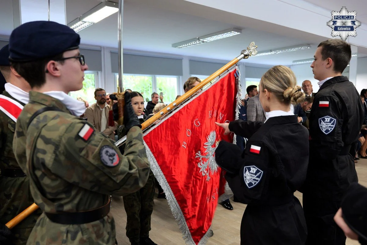 W środę 15 października uczniowie klas pierwszych XV Liceum Ogólnokształcącego im. rtm. Witolda Pileckiego w Katowicach złożyli uroczyste ślubowanie na sztandar szkoły, symbolicznie rozpoczynając swoją edukację w klasach o profilu mundurowym. W wydarzeniu uczestniczyli przedstawiciele służb mundurowych, a wśród nich Komendant Miejski Policji w Katowicach insp. Dariusz Kiedrzyn oraz Komendant Komisariatu VII Policji w Katowicach mł. insp. Robert Majda, Naczelnik Wydziału Kadr i Szkolenia podinsp. Sebastian Hulin wraz z kadrową, która w szkole prowadzić będzie zajęcia asp. Edytą Głombek, Kierownik Referatu ds. Profilaktyki Społecznej, Nieletnich i Patologii mł. asp. Klaudia Manterys i Kierownik Rewiru Dzielnicowych katowickiej „siódemki” st. asp. Andrzej Maniera.