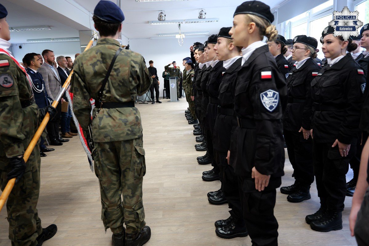Następnie szef katowickich policjantów zabrał głos i pogratulował uczniom decyzji o nauce w klasach mundurowych, życząc im powodzenia i wytrwałości. Zaznaczył, że już za kilka lat będą mogli zmienić szkolny mundur, na niebieski mundur policyjny i dołączyć do szeregów Policji, która oferuje szerokie możliwości rozwoju zawodowego. Komendant zapewnił także o stałym wsparciu Komendy Miejskiej Policji w Katowicach w działaniach na rzecz uczniów i szkoły.
