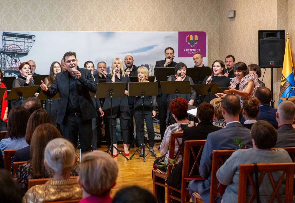Spotkanie zostało uświetnione występem Zespołu Śpiewaków Miasta Katowice “Camerata Silesia”, który od 1990 roku prowadzi dyrygent Pani Anna Szostak wraz z pianistą Panem Pawłem Tomaszewskim kompozytorem, aranżerem, producentem muzycznym. Profesorem Akademii Muzycznej im. Karola Szymanowskiego w Katowicach, doktorem habilitowanym, od 2019 roku dziekanem Wydziału Jazzu i Muzyki Rozrywkowej.