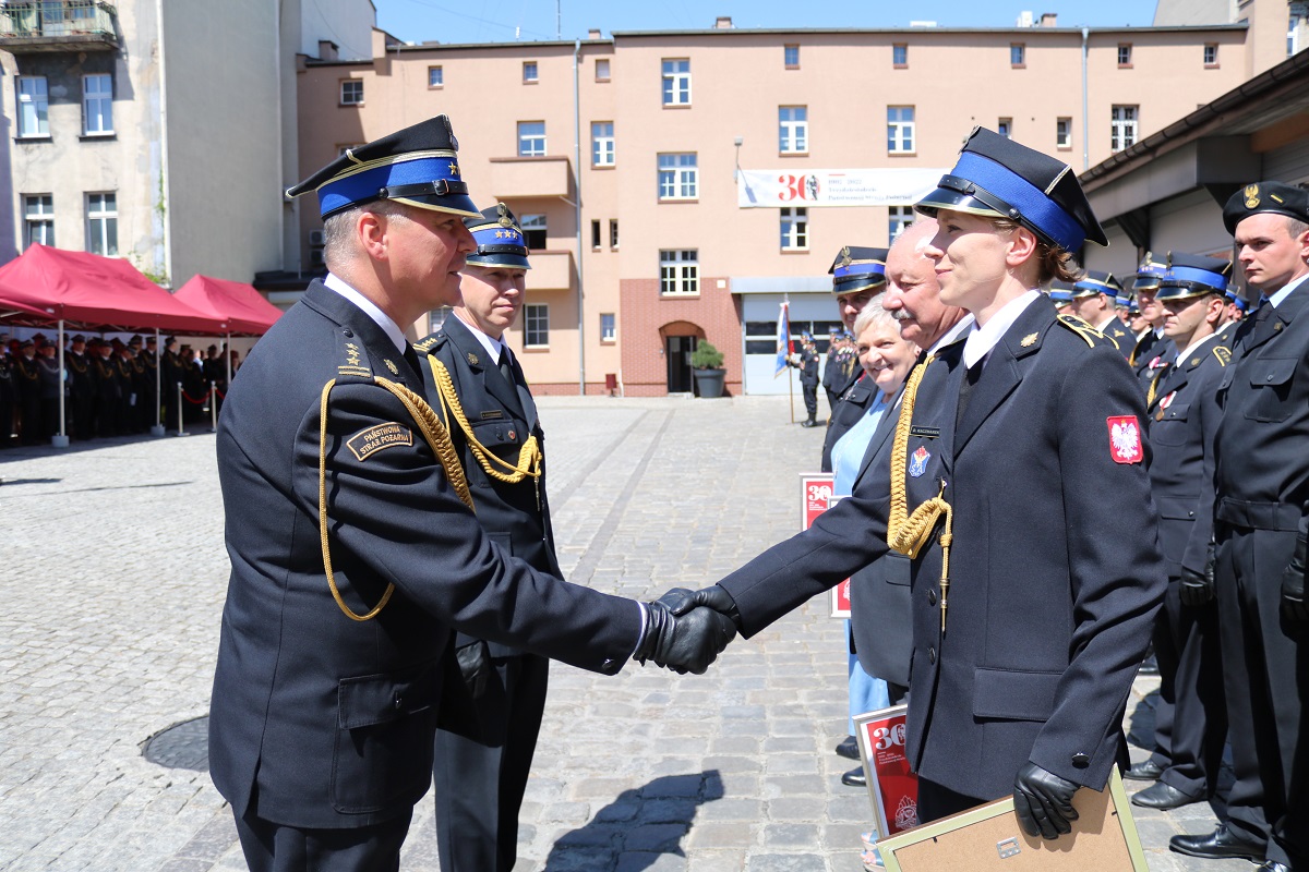 Zastępca Śląskiego Komendanta Wojewódzkiego st. bryg. Mirosław Synowiec również serdecznie podziękował przedstawicielom władz samorządowych za przybycie i wsparcie dla straży pożarnej oraz druhom OSP za zaangażowanie. Na koniec wystąpienia pogratulował awansowanym i wyróżnionym funkcjonariuszom. Życzył strażakom wszystkiego dobrego oraz „wsparcia św. Floriana”.