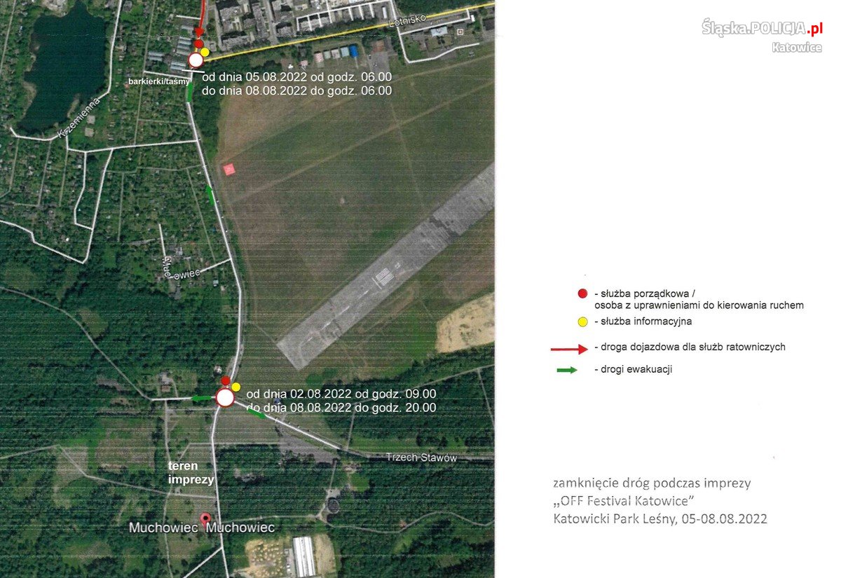 W okresie od 5 do 8 sierpnia w Katowicach w rejonie katowickiego lotniska Muchowiec odbędzie się impreza „OFF Festival Katowice”. Na czas wydarzenia czasowo zamknięty będzie odcinek ul. Francuskiej.