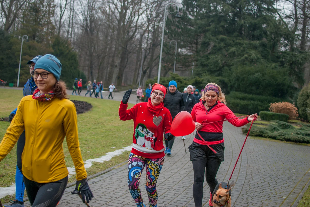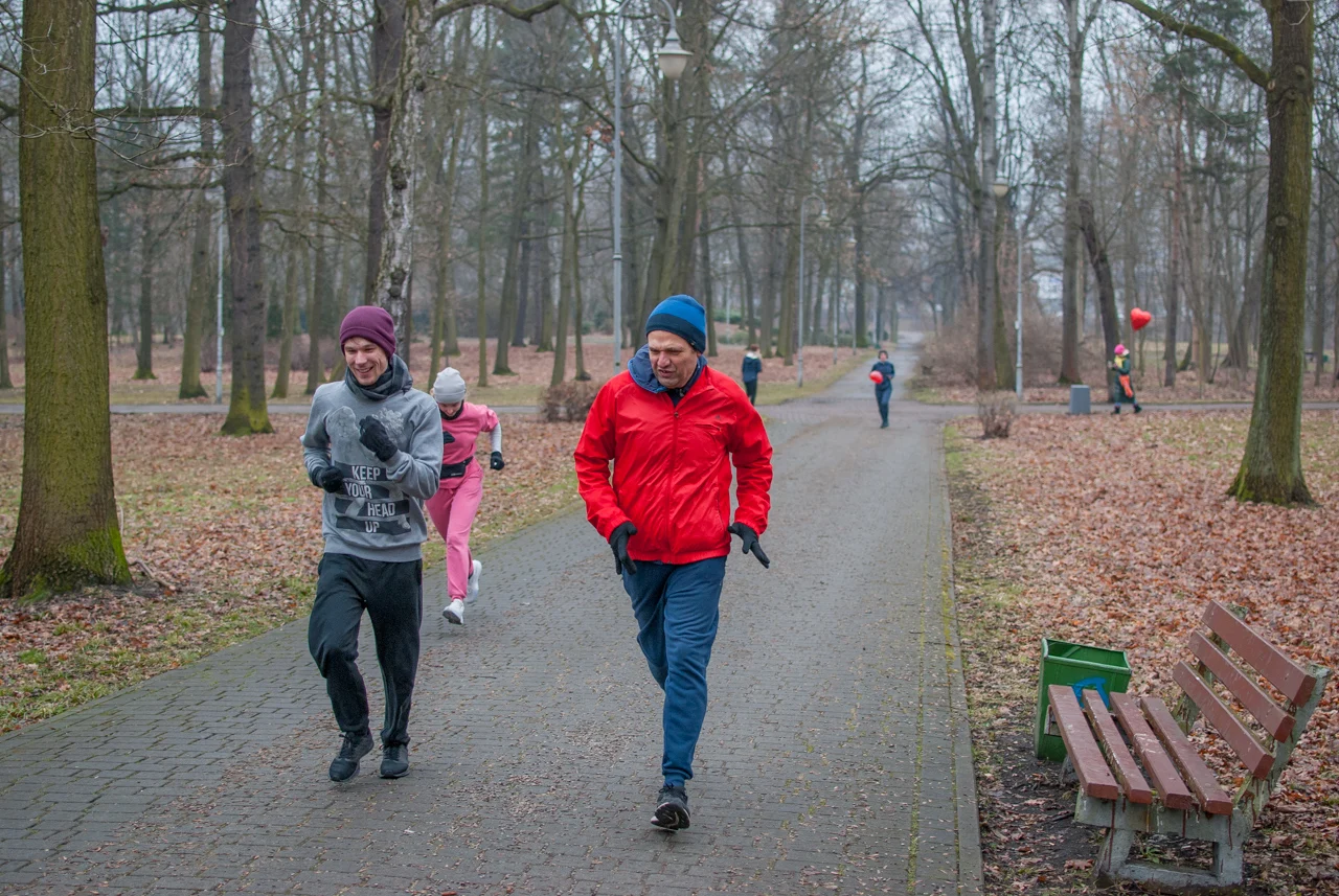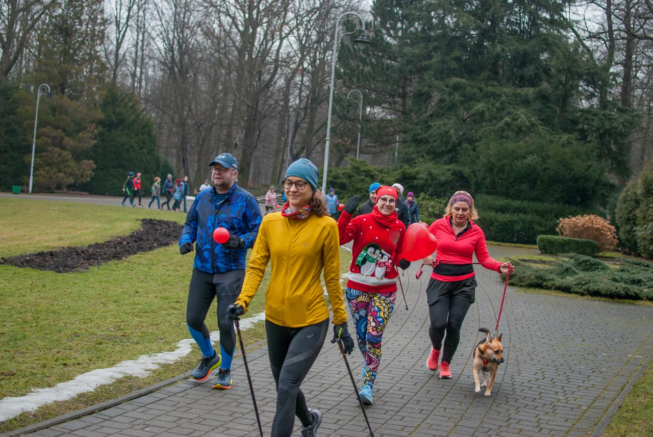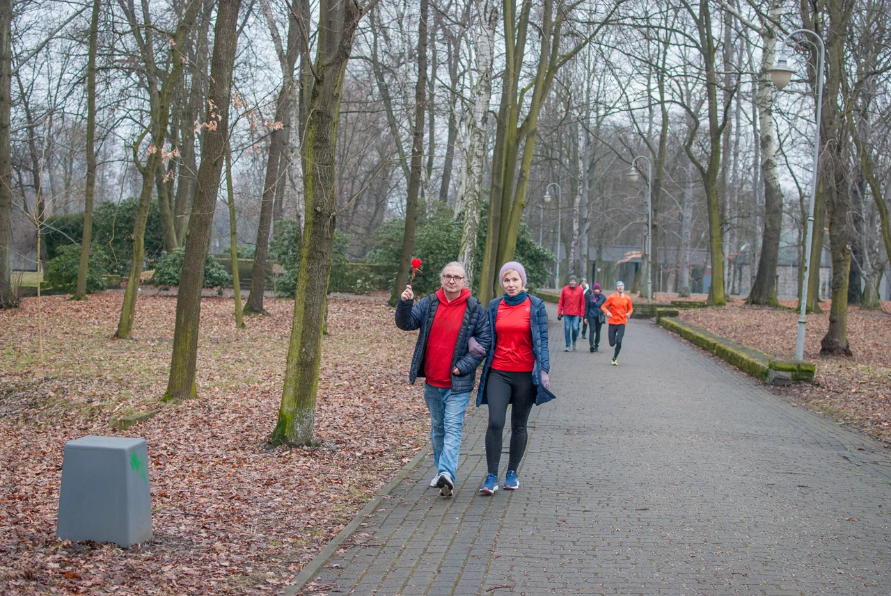 Pogoda dopisała, było rześko, ale na szczęście bez opadów czy oblodzenia trasy. Frekwencja dopisała jeszcze bardziej, a kolorowy tłum biegaczy i kijkarzy ponownie wypełnił alejki parku Kościuszki. Wiele osób miało na sobie elementy stroju, nawiązujące do dzisiejszego święta zakochanych.