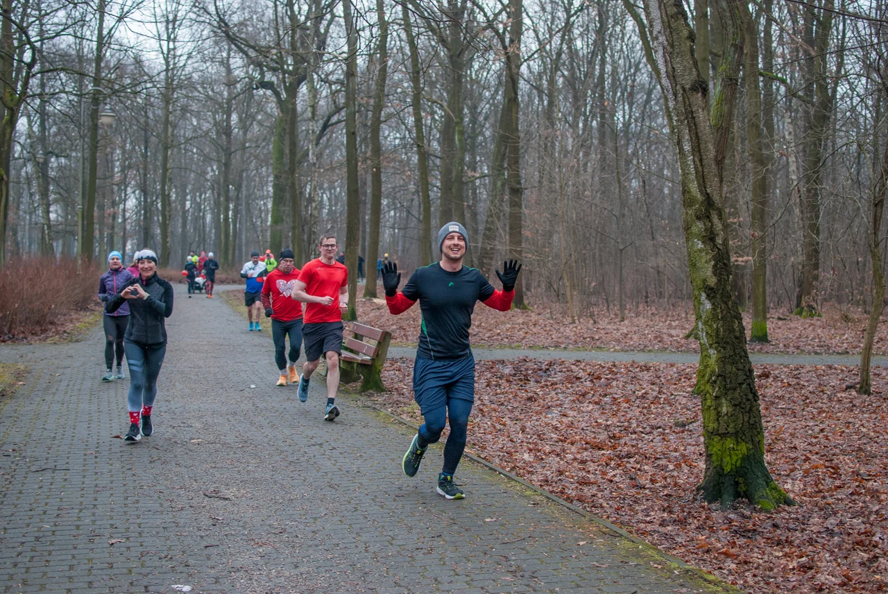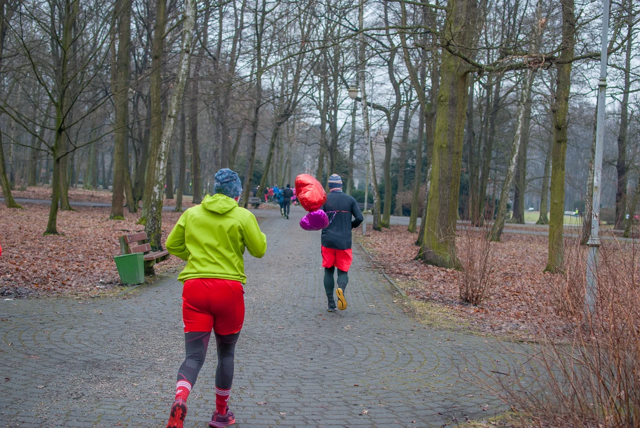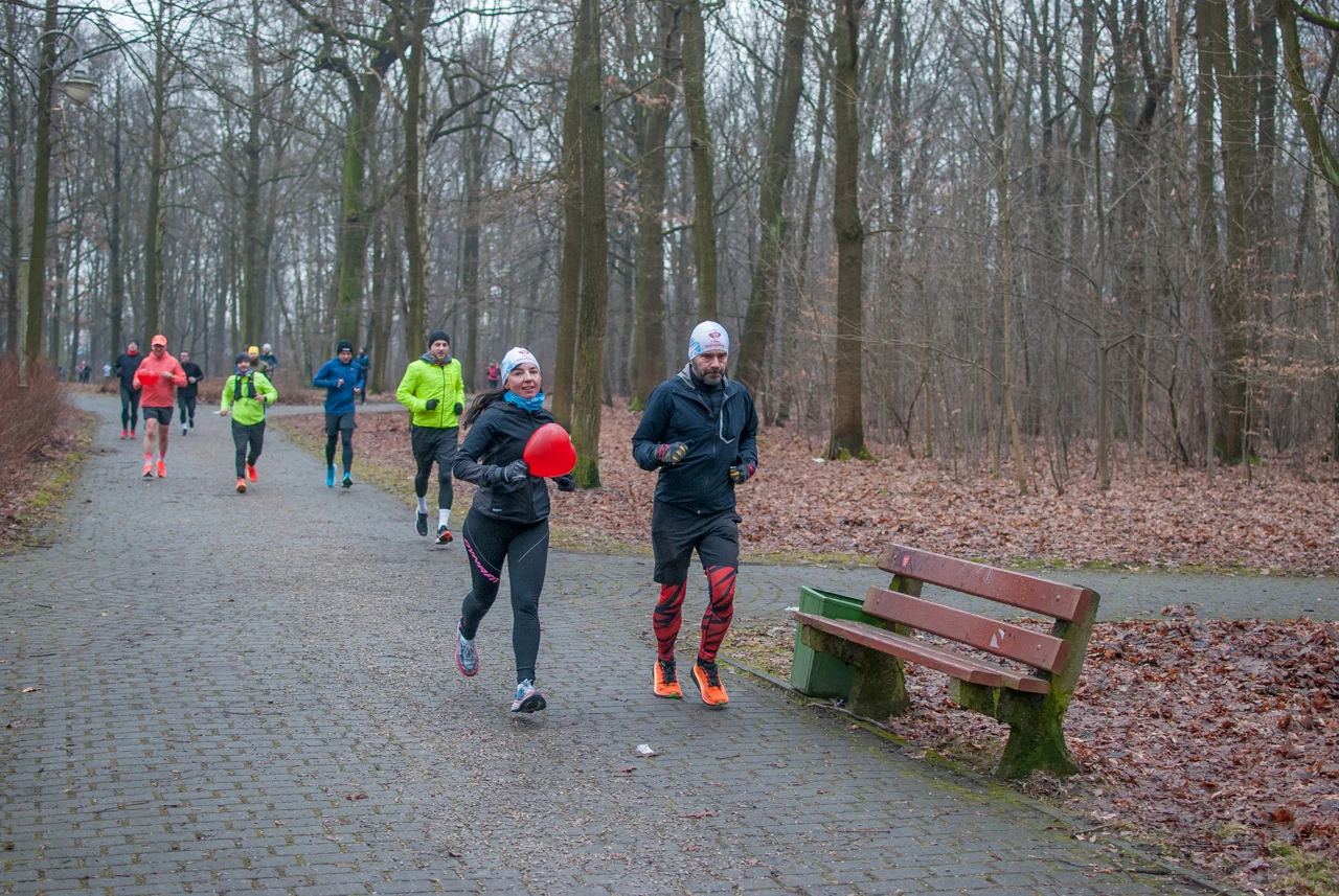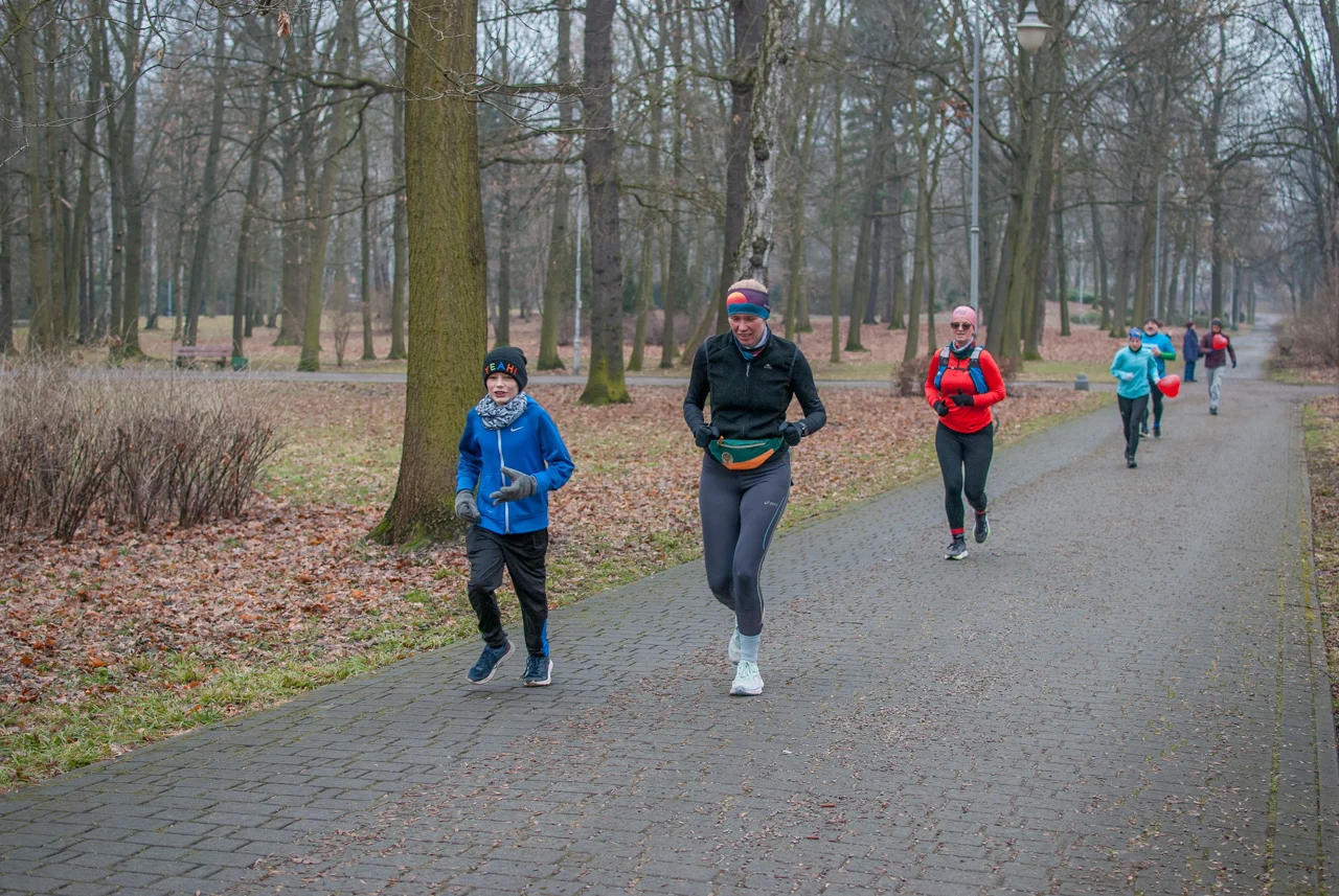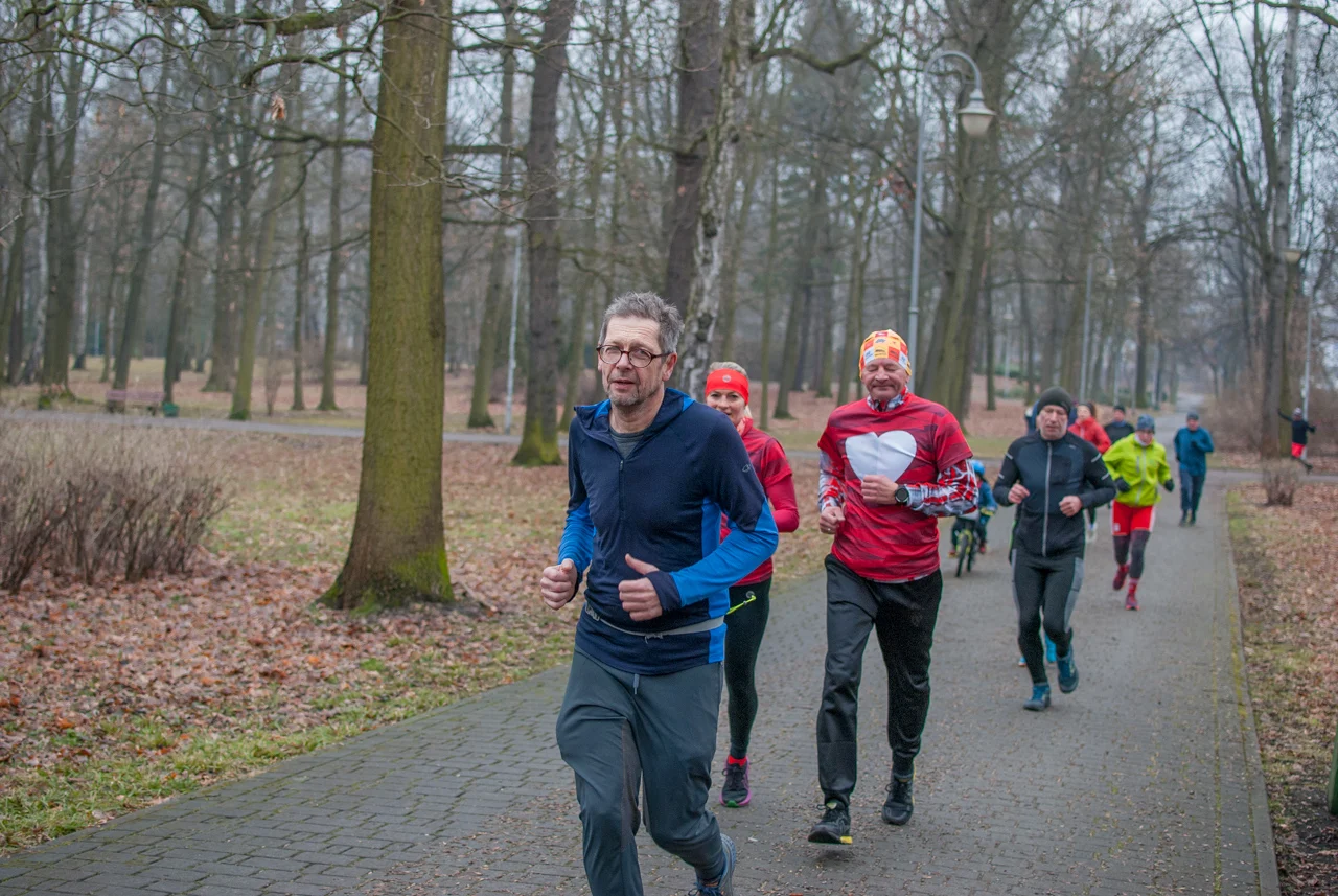 Pogoda dopisała, było rześko, ale na szczęście bez opadów czy oblodzenia trasy. Frekwencja dopisała jeszcze bardziej, a kolorowy tłum biegaczy i kijkarzy ponownie wypełnił alejki parku Kościuszki. Wiele osób miało na sobie elementy stroju, nawiązujące do dzisiejszego święta zakochanych.