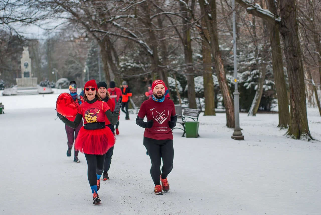 Jak co tydzień, w parku Kościuszki kilkadziesiąt osób zebrało się, aby wspólnie wziąć udział w biegowych spotkaniach parkrun Katowice. Mroźny, sobotni poranek, a także alejki pokryte białym puchem, stanowiły idealną oprawę do biegu z motywem czerwonego, walentynkowego serca.