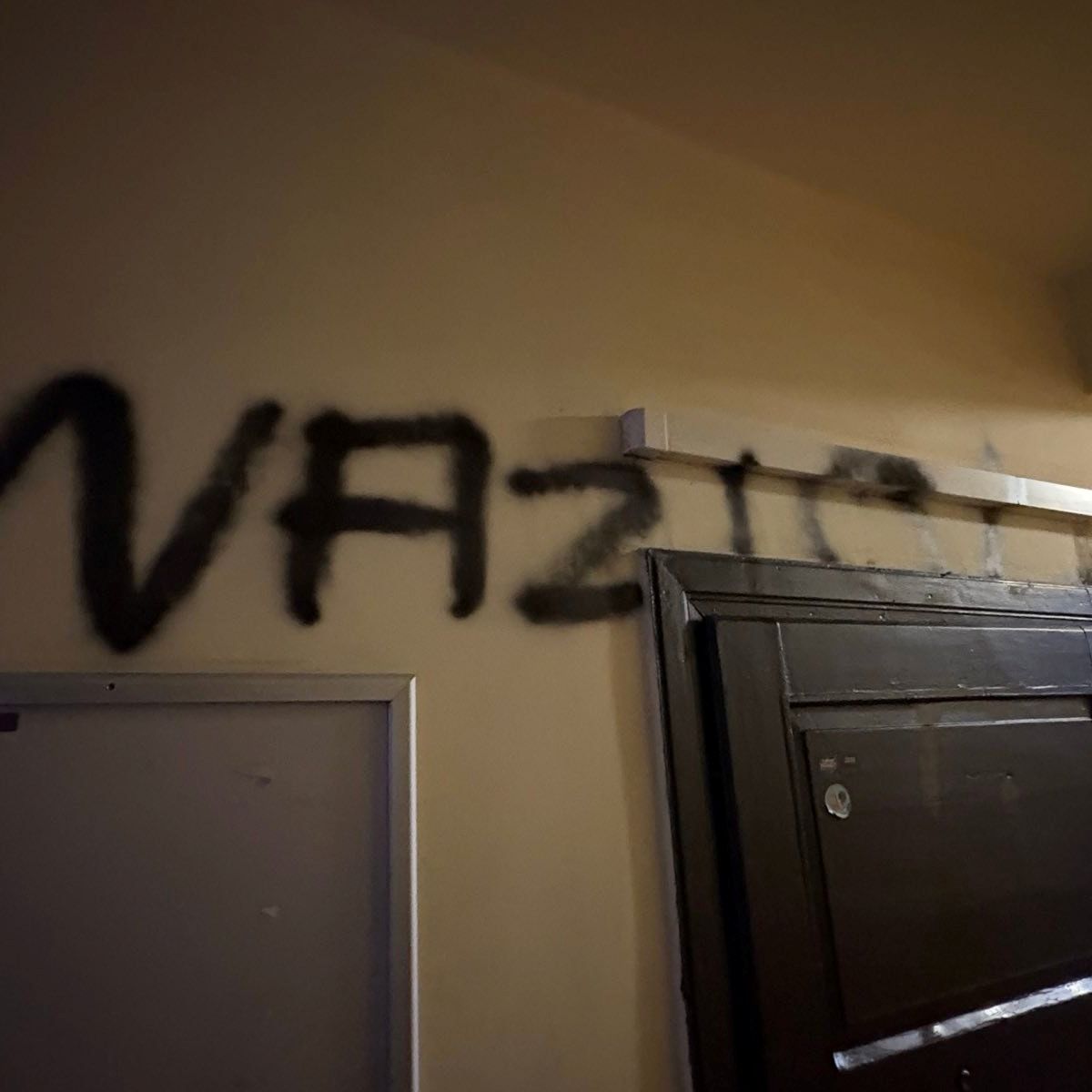 Ktoś na oknach, drzwiach i ścianach wypisał obraźliwe hasła “naziole” i wymalował swastyki. Kohut skomentował tę sprawę w mocnych słowach.