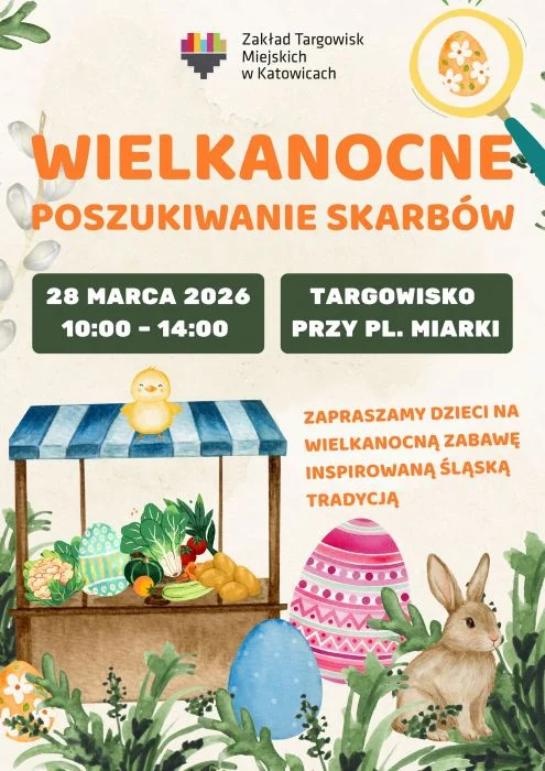 W sobotę, 28 marca, targowisko przy pl. Miarki zamieni się w przestrzeń wielkanocnej zabawy dla najmłodszych. Od 10:00 do 14:00 dzieci będą mogły wziąć udział w „Targowym poszukiwaniu skarbów” – zabawie inspirowanej śląską wielkanocną tradycją.