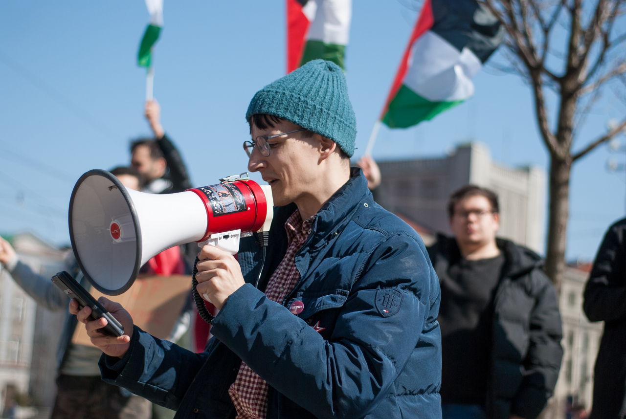 Wykrzyczano hasła, m.in.: “wolna, wolna Palestyna”, “free, free Palestine”.