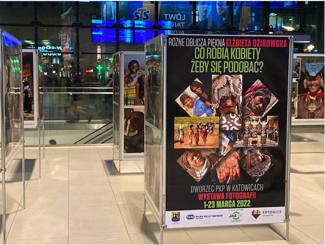 W związku ze zbliżającym się Międzynarodowym Dniem Kobiet, mieszkańców Katowic mają okazję odwiedzić przestrzeń dworca PKP i obejrzeć wielkoformatową wystawę fotografii „Różne oblicza piękna. Co robią kobiety, żeby się podobać?” Elżbiety Dzikowskiej, cenionej podróżniczki, znanej wielu mieszkańcom, m.in., z legendarnego programu „Pieprz i Wanilia”, zrealizowanego dla TVP wraz z Tonym Halikiem.