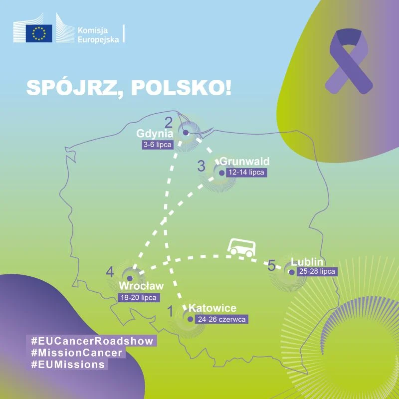 4 czerwca wystartowała w Polsce unijna kampania o nazwie „Spójrz, Polsko! Miej baczne oko na raka!”. Po sukcesie na Litwie, przez 5 polskich miast przejedzie autobus oferujący między innymi spotkania z lekarzami i naukowcami, którzy na co dzień zajmują się tematyką nowotworową. Celem kampanii organizowanej przez Komisję Europejską jest zwiększenie świadomości na temat profilaktyki onkologicznej oraz przełamywanie społecznego tabu dotyczącego raka.