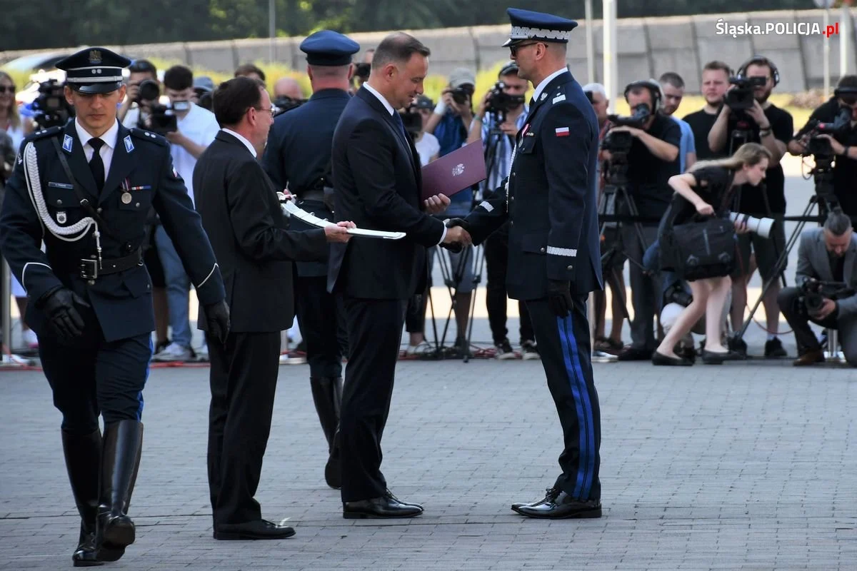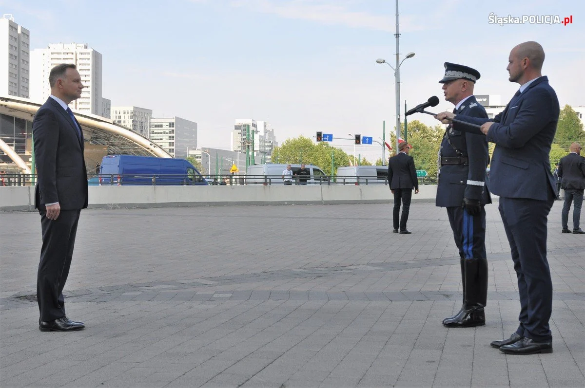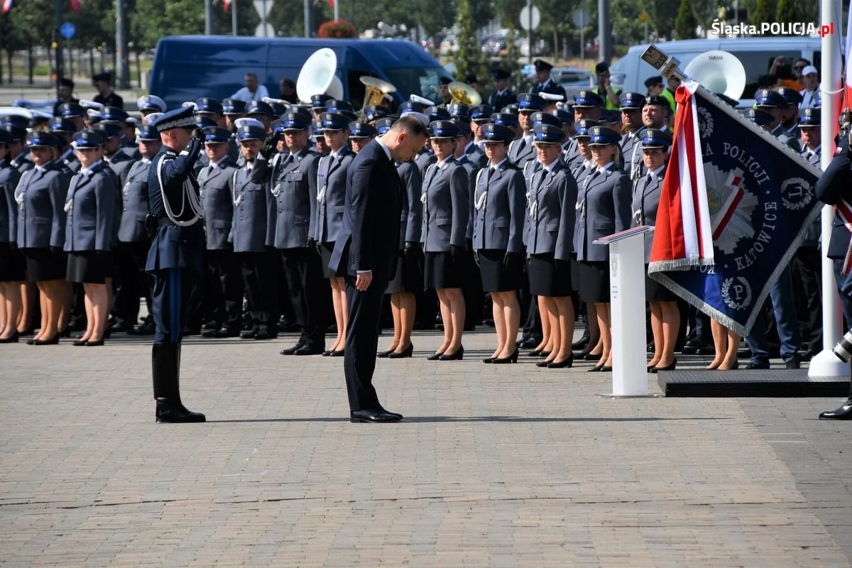 O godz. 10.00 w Katowicach, na Placu Sławika i Antalla, uroczystości rozpoczęły się od przeglądu pododdziałów Policji, którego dokonał Prezydent Andrzej Duda w asyście Komendanta Głównego Policji gen. insp. dr. Jarosława Szymczyka. Następnie gospodarz uroczystości powitał zaproszonych gości, na czele z Prezydentem RP. Szef polskiej Policji podziękował Prezydentowi Andrzejowi Dudzie oraz ministrom, parlamentarzystom, wojewodzie śląskiemu, marszałkowi województwa, przedstawicielom związków zawodowych, duchowieństwa oraz reprezentantom świata nauki, medycyny, kultury i sportu za przyjęcie zaproszenia.