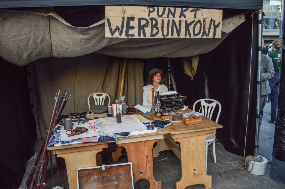 Na scenie – artyści wykonujący pieśni patriotyczne, m.in. Szarą piechotę i Pierwszą brygadę (niektórzy nucili razem z nimi), przed nią – tłum ludzi i stoiska z ofertą Wojska Polskiego i NBP (między innymi), gdzie można było otrzymać pamiątkowe monety, obejrzeć broń (np replikę AK-47) czy skosztować wojskowej grochówki. Tuż obok – wystawa prezentująca Ojców Niepodległości.