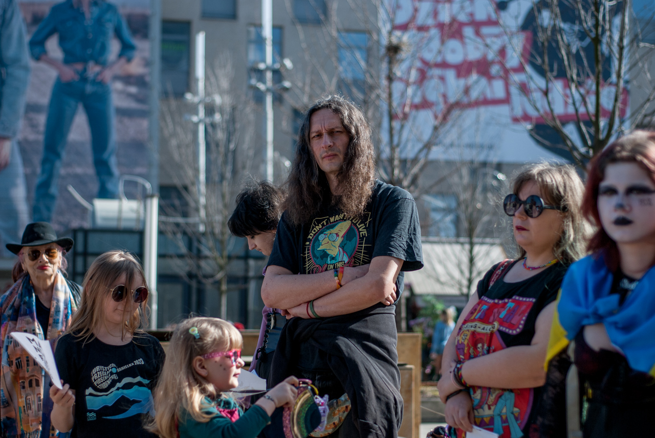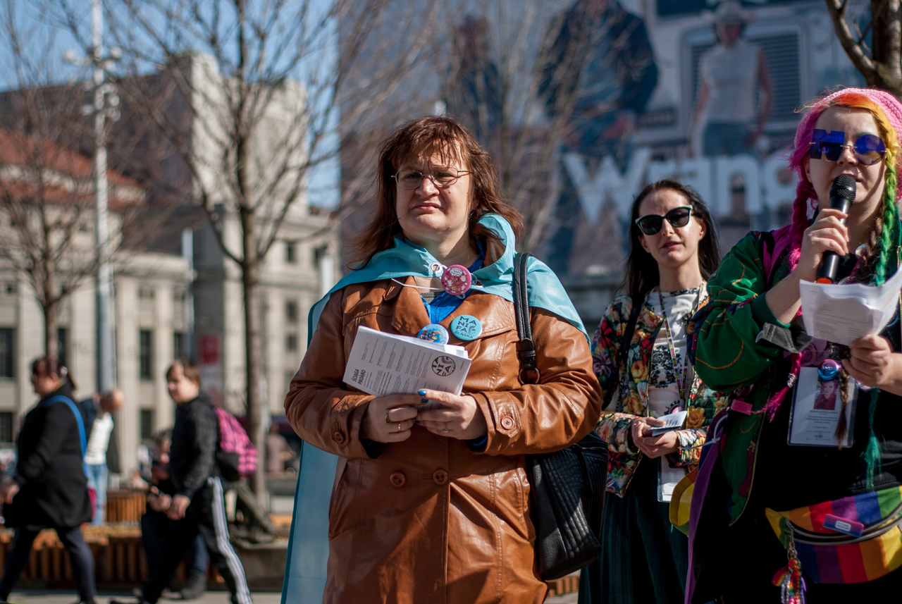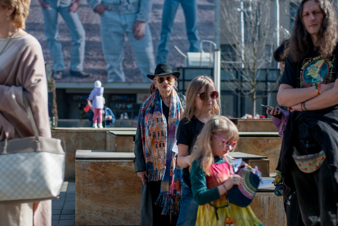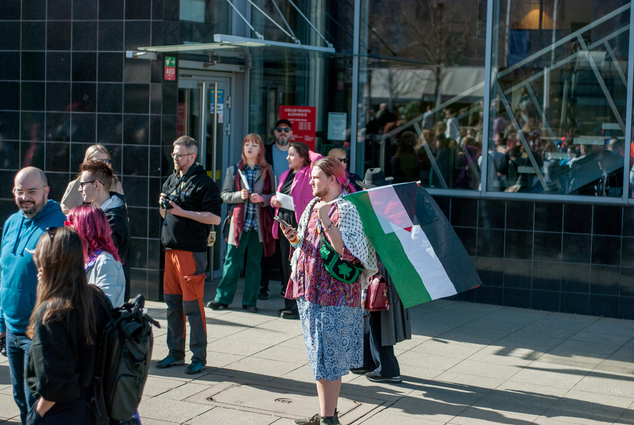 Nie obyło się, niestety, bez przykrych incydentów. W pewnym momencie uczestników zgromadzenia werbalnie zaatakowała starsza kobieta, mówiąc, że są nienormalni, że tu jest Polska i Pan Bóg ich ukaże. Z naszych zdjęć wiemy, że była uczestniczką pobliskiego zgromadzenia. Na płycie rynku rozstawili się bowiem przeciwnicy aborcji z obrazoburczym, nieprzyjemnym transparentem, mającym obrazować abortowane dziecko. Nie licząc agresywnej kobiety, pozostali byli jednak bardzo spokojni, modlili się, używając nagłośnienia, ale nie ingerowali w przebieg odbywających się obok Manify