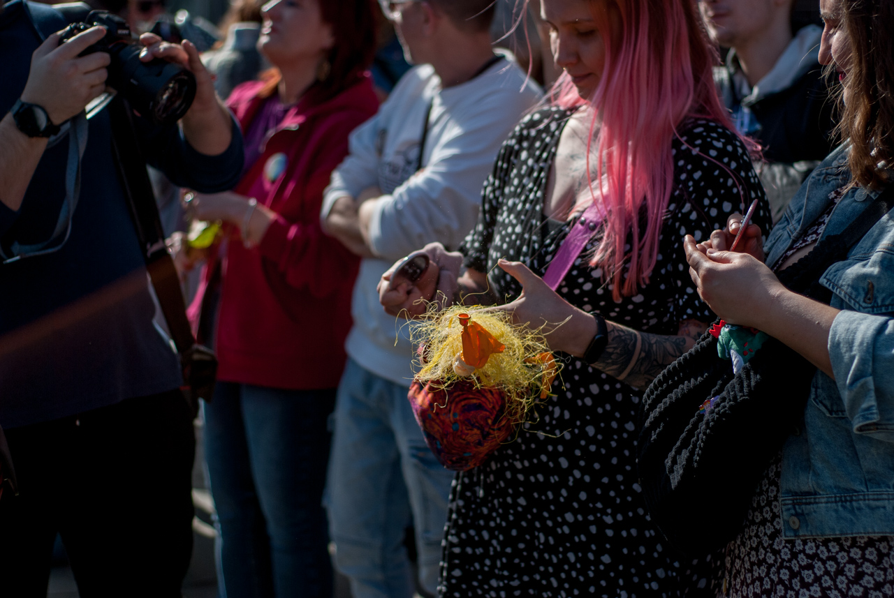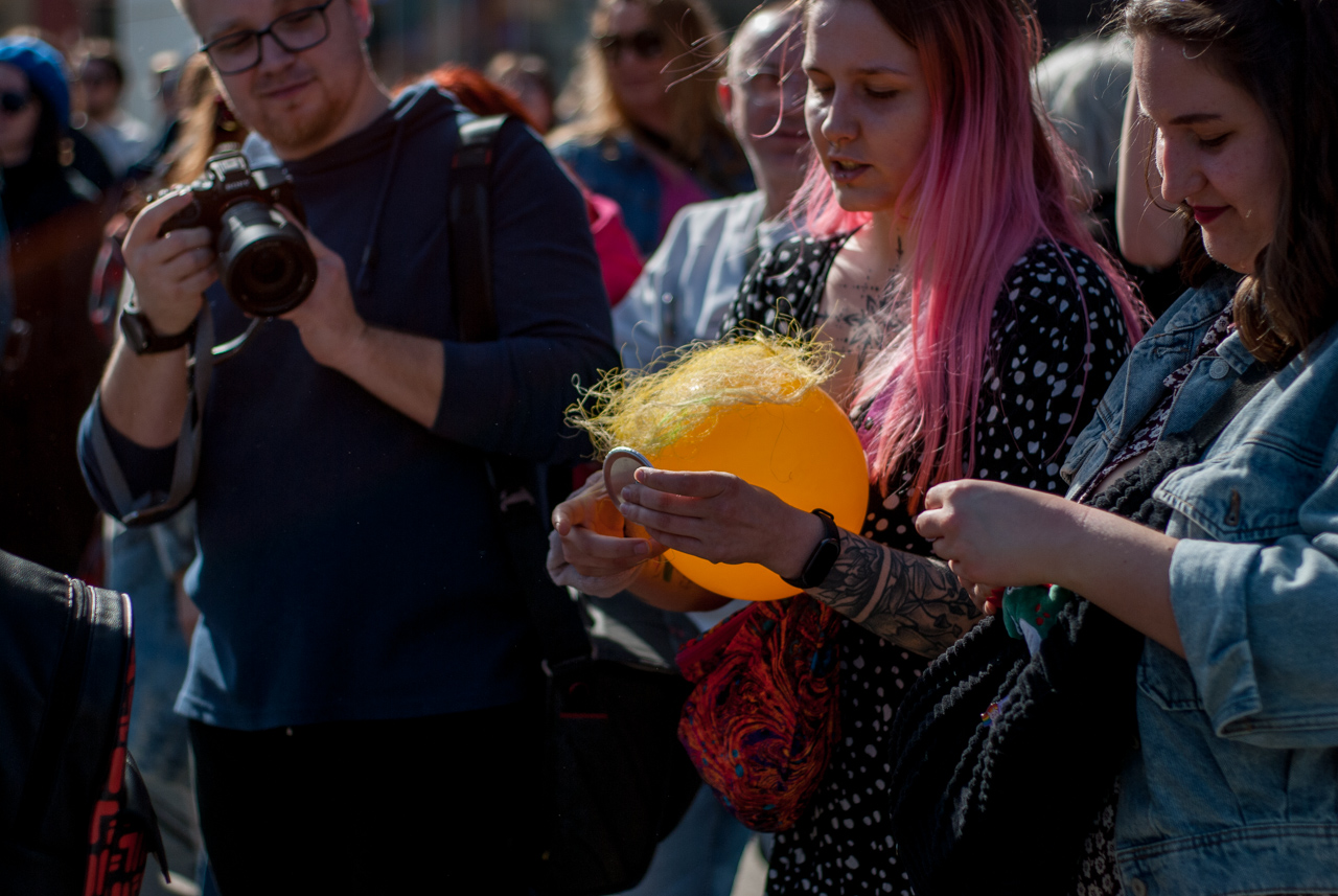 Na znak symbolicznego protestu przekuto też pomarańczowe balony symbolizujące pewnego przywódcę z twarzą tego koloru, a także fioletowe, symbolizujące duchowieństwo w purpuratach. Rozdawano również biuletyn z tegorocznym manifestem.