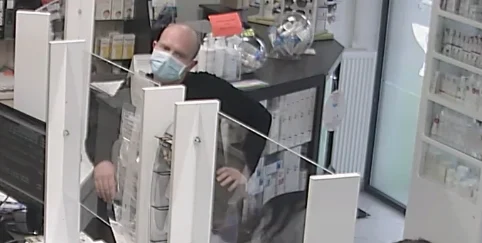 Policja publikuje wizerunek mężczyzny podejrzewanego o posłużenie się w co najmniej dwóch aptekach podrobionymi receptami w celu zakupienia leków opioidowych.