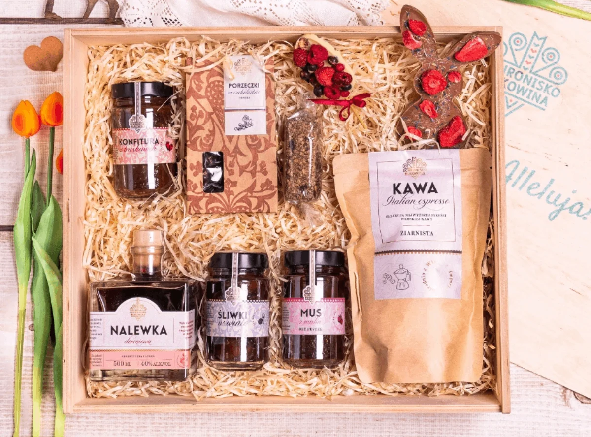 Zestawy wielkanocne przygotowane przez Schronisko Bukowina to nie zwykłe prezenty, które można dostać w pierwszym lepszym sklepie. To wyjątkowe kompozycje składające się z unikalnych produktów regionalnych wyróżniających się nienagannym składem oraz wyrafinowanym smakiem. Paczki wielkanocne dla pracowników przybierają postać eleganckich drewnianych skrzyni, na których można umieścić logo Twojej firmy. W każdym zestawie znajdują się rarytasy, którym ciężko się oprzeć. Mieszczą się tam znakomite słodkości – owoce w czekoladzie, krówki ze zdrowym składem, czy jajeczka z białej czekolady z pistacjami. Oprócz wymienionych frykasów zestawy mieszczą w sobie wyborne nalewki, syropy owocowe, przetwory takie jak: mus dyniowy, czy malinowy oraz śliwki w winie, a także aromatyczne, ziołowe herbatki. W zestawach znaleźć można również produkty, który uświetnią wielkanocne śniadanie! Są nimi: domowy zakwas na żurek, ćwikła, czy tarty chrzan i pasztet z królika.