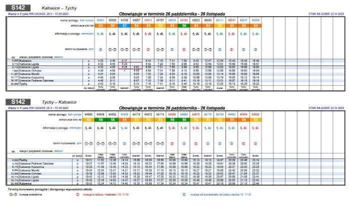 W związku z przebudową linii kolejowej magistralnej E65 w Katowicach, w okresie od 26 października do 26 listopada część ruchu kolejowego pasażerskiego na połączeniu Miasta Tychy z Ligotą poprowadzona zostanie linią kolejową 142 przebiegającą przez Podlesie – Dąbrowa, Kostuchnę, Murcki i Ochojec. Zapraszamy do zapoznania się z rozkładem jazdy.