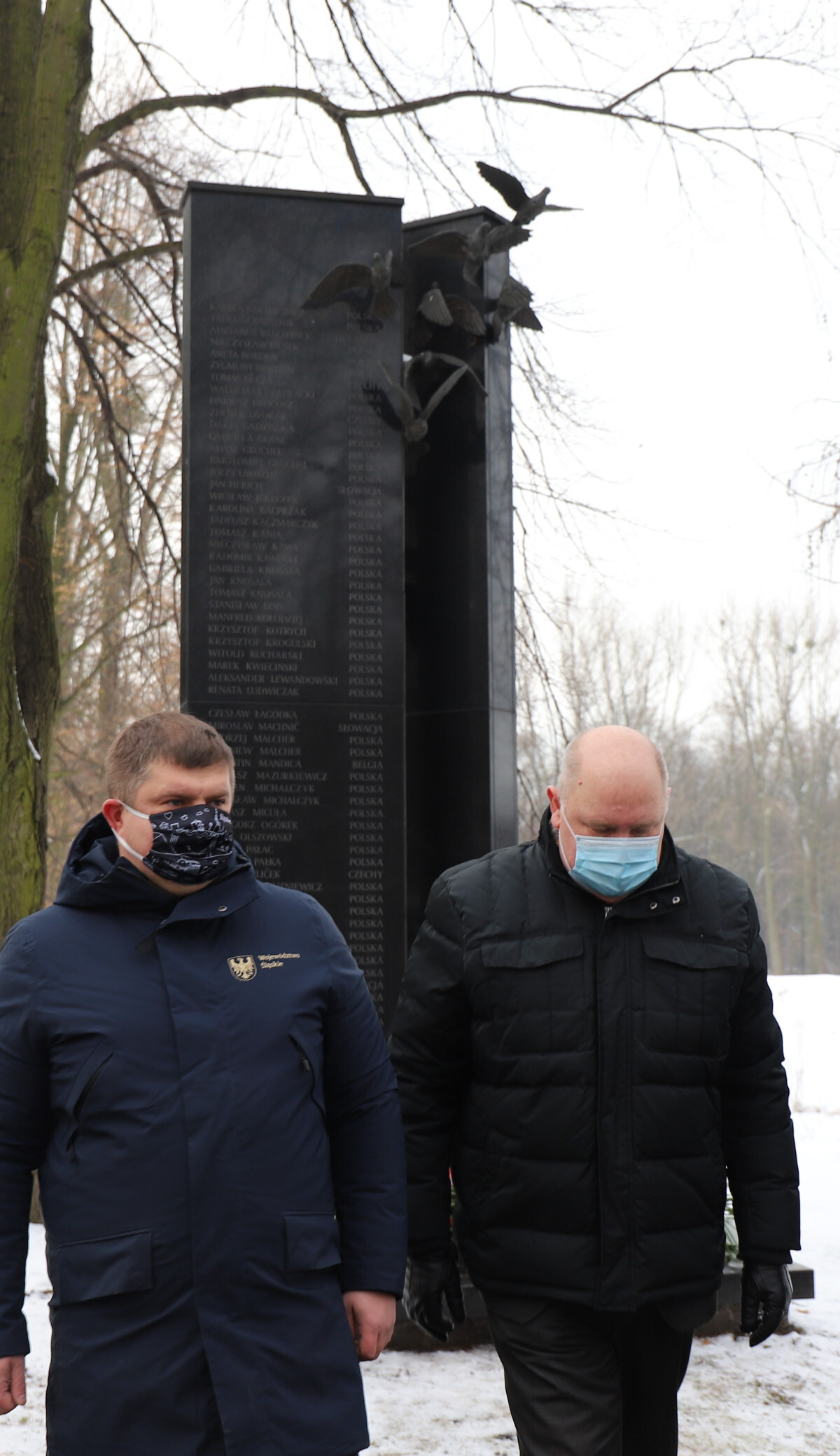 By uczcić pamięć 65 ofiar tragedii, wicewojewoda śląski Jan Chrząszcz złożył wieniec pod pomnikiem znajdującym się na terenie MTK