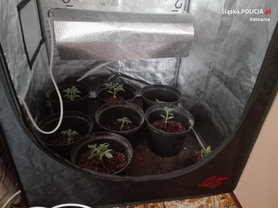 19-latek uprawiał konopie w swoim pokoju, w specjalnie przygotowanej do tego szafie. Policjanci odkryli w niej 7 donic z krzakami marihuany oraz 3 woreczki z gotowym suszem. Mieszkaniec Katowic usłyszał już zarzuty.