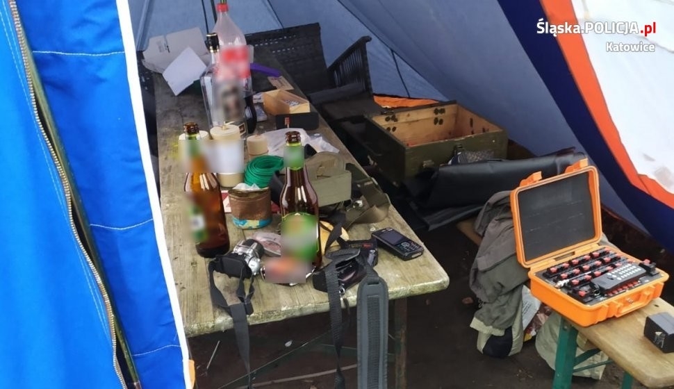 Dyżurny otrzymał informacje, że w namiocie ustawionym na jednej z posesji miało dojść do kilkukrotnego wybuchu materiałów pirotechnicznych. Na miejsce natychmiast skierowani zostali katowiccy wywiadowcy, którzy w namiocie zastali czterech mężczyzn. W trakcie policyjnej interwencji okazało się, że 35-letni właściciel posesji biesiadował przy alkoholu ze swoimi znajomymi. Badanie trzeźwości wskazało, że mężczyzna miał prawie 2 promile alkoholu w organizmie.