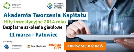 Przed nami kolejna edycja Akademii Tworzenia Kapitału, tworzona w ramach programu Akcjonariat Obywatelski. Podczas szkolenia uczestnicy dowiedzą się w co warto zainwestować w 2014 roku, a po zakończeniu części szkoleniowej wezmą udział w seansie filmowym przygotowanym przez Cinema City.